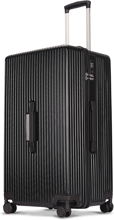 GinzaTravel Trunk Luggage, 28 Inch Luggage with Spinner Wheels, Scratch resistant texture Lightweight PC material with TSA Lock«__Family Travel Series «__ (Black)