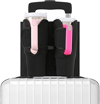 Luggage Cup Holder for Suitcase, Universal Luggage Cup Holder for Coffee Mug and Stanley Tumblers, Luggage Cup Caddy Gifts for Business, Flight Attendants, Travelers, Black