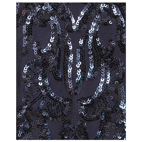 Alex Evenings Women's Long Blouson Dress with Flutter Sleeves, Navy Sequin Pattern