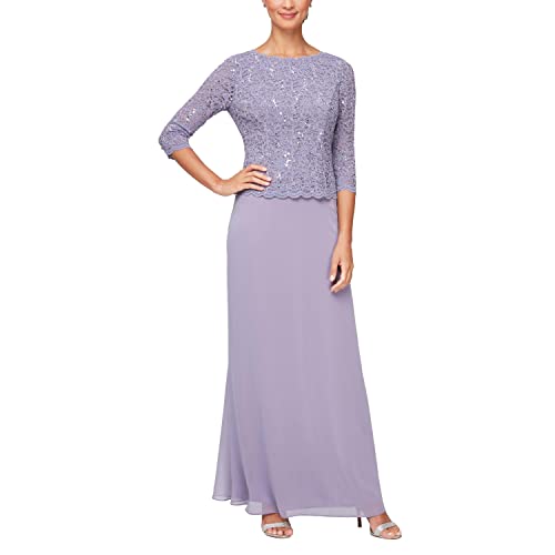 Details: Our long mock dress with sequin lace bodice and illusion 3/4 sleeve is perfect evening attire for a formal wedding. Great for a mother or grandmother of the bride.