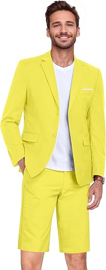 Men's 2 Piece Suit Set Slim Fit Business Tuxedo Suit with Short Pants Summer Wedding Suits for Men