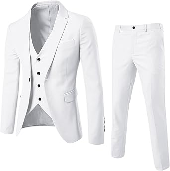 Men's 3 Piece Slim Fit Suit Set, One Button Solid Blazer Jacket Vest Pants Suit Sets for Business Wedding Party