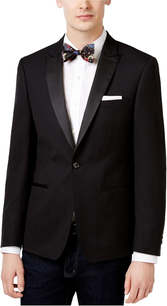 Calvin Klein Mens Jacquard Dinner Two Button Blazer Jacket, Black, 40 Regular