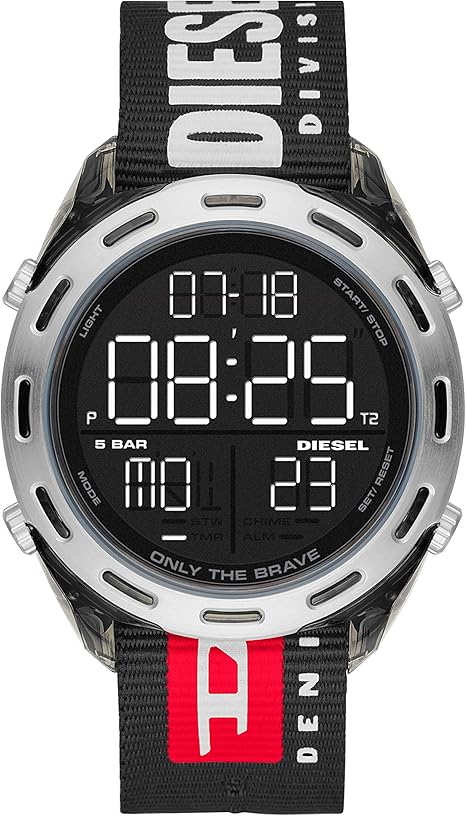 Diesel Crusher Men's Digital Sports Watch with Lightweight Nylon Case and Silicone or Nylon Band