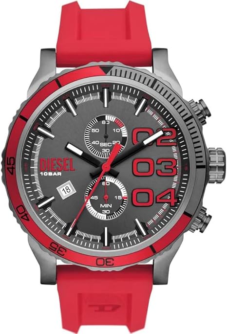 Diesel DZ4613 Gray Chronograph Dial Red Silicone Double Down 2.0 Men's Watch
