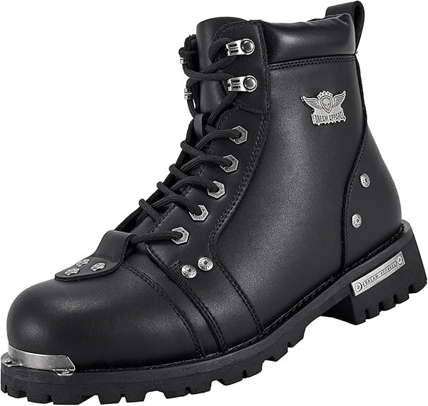 Dream Apparel Mens Motorcycle Boots for Riding Biker with Side Zipper, Waterproof Black Faux Leather Biker Boots Ankle Booties, Lace Up Military Combat Boots with Low Heel