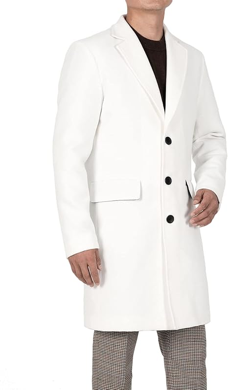 Bonnorth Men's Winter Wool Blend Mid-Length Peacoat Single Breasted Notched Collar Coat