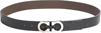 Ferragamo Mens Black/Brown Pebbled Leather Reversible Belt