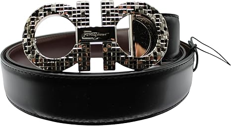 Salvatore Ferragamo Adjustable Reversible BLack/Brown Cracked Pavement SIlver Gancini Belt Size 42US/105IT
