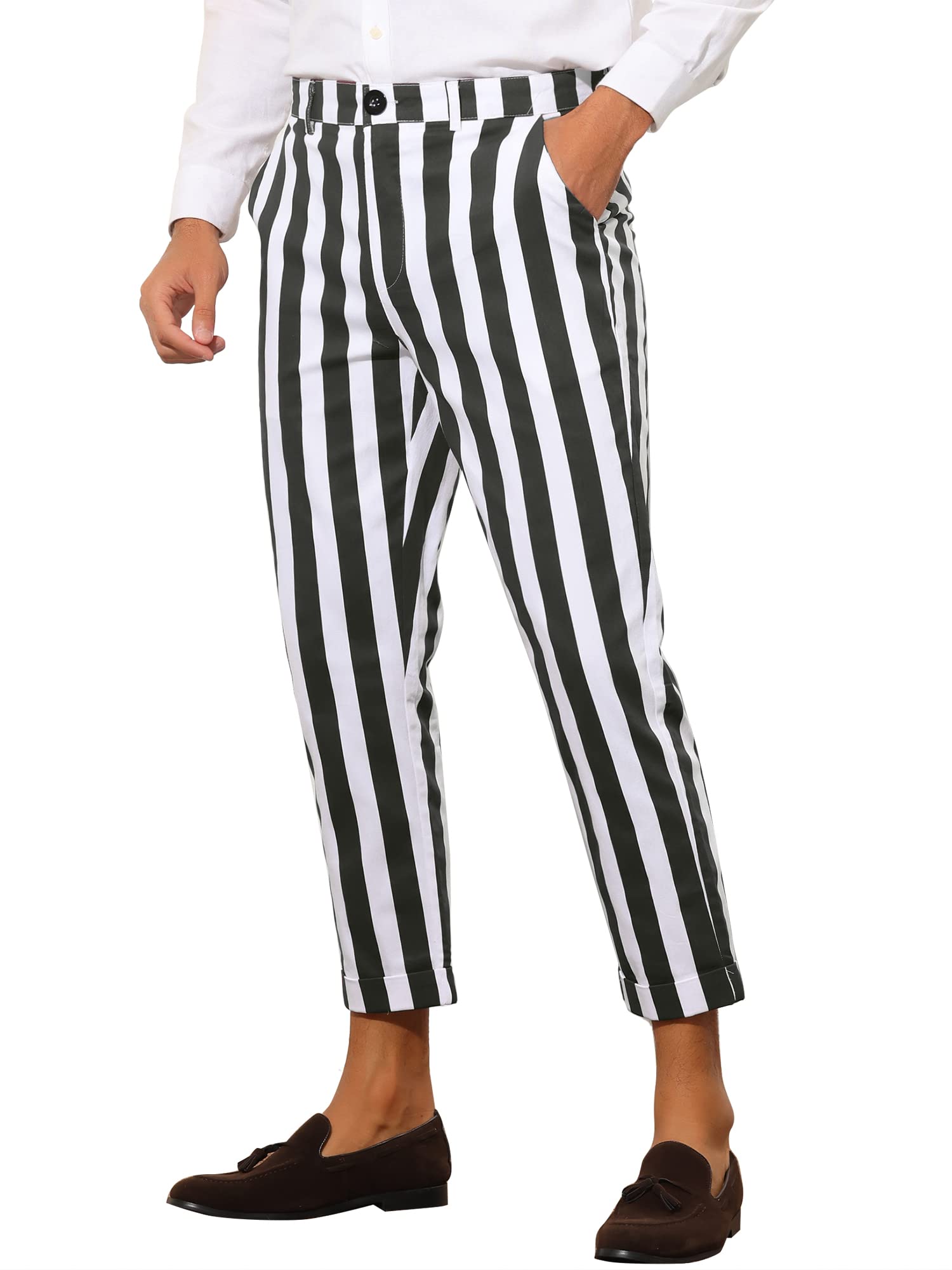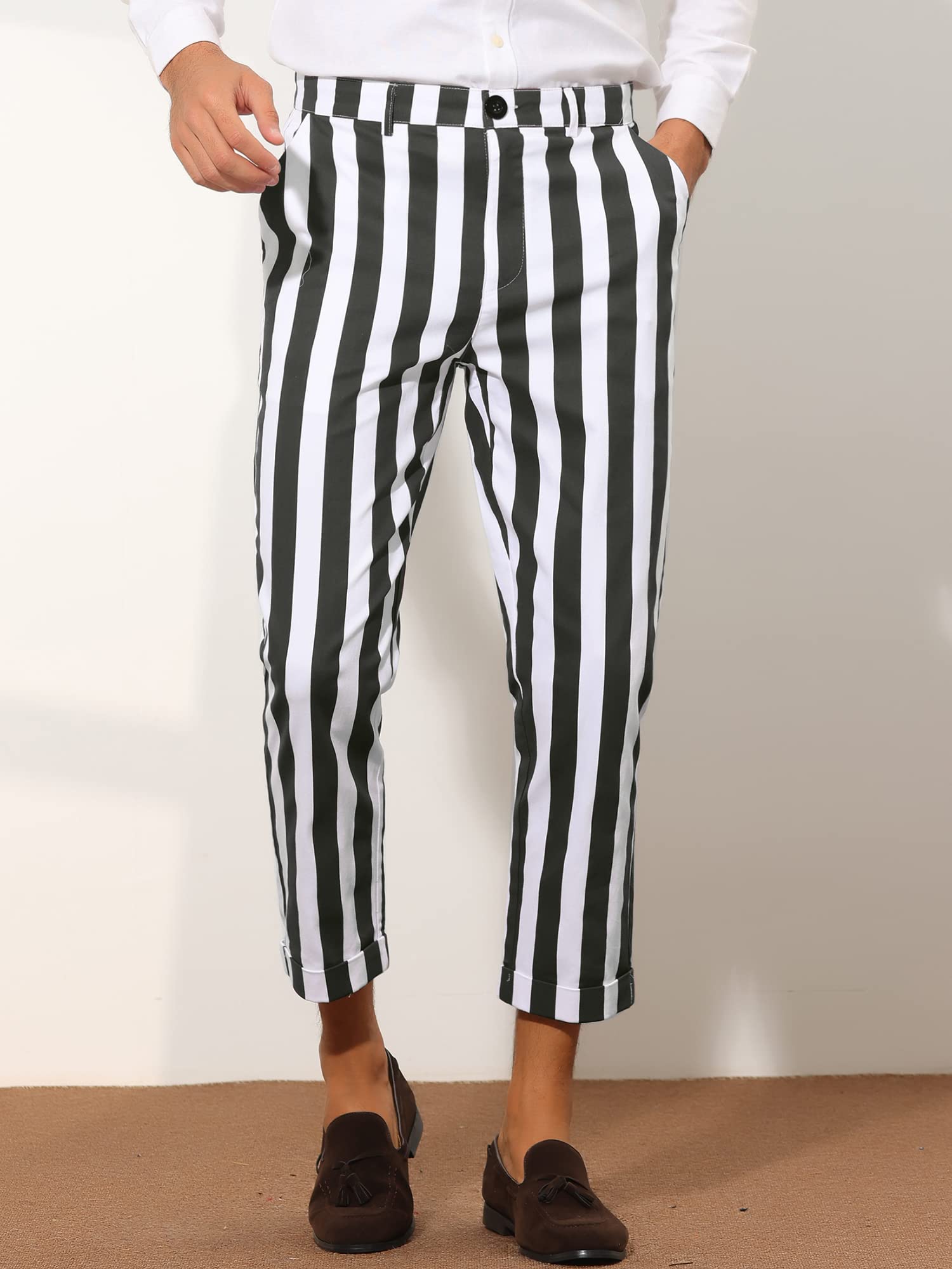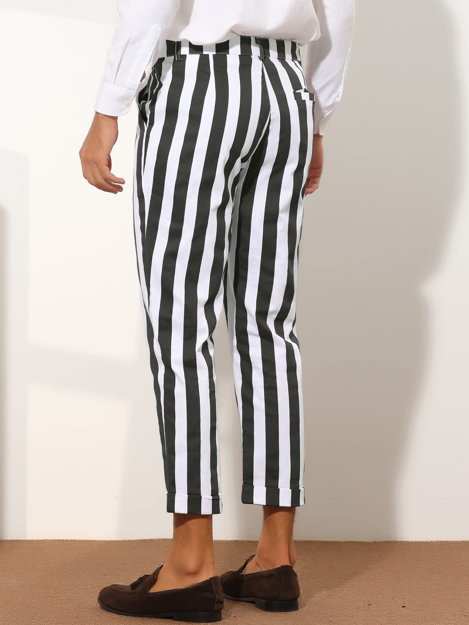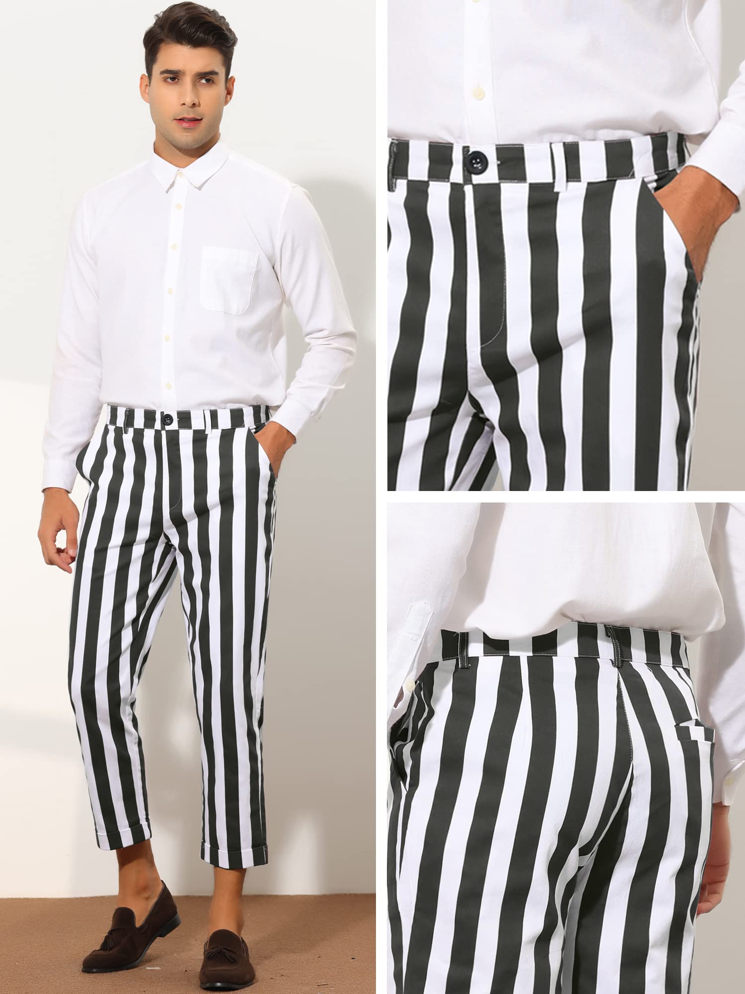 Details: Lars Amadeus Striped Business Pants for Men's Slim Fit Flat Front Tapered Office Cropped Pants