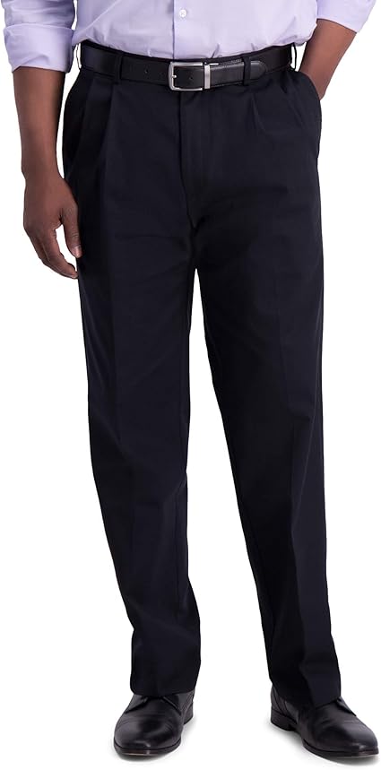 Haggar Men's Iron Free Premium Khaki Classic Fit Pleat Front Expandable Waist Casual Pant (Regular and Big & Tall Sizes)