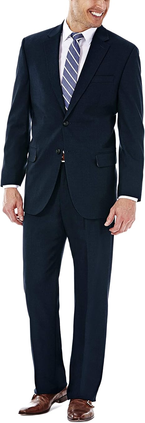 Haggar Men's Premium Performance Stretch Stria Suit Jacket and Pants Classic FIt