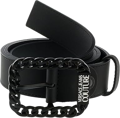 VERSACE JEANS COUTURE Black Signature Chain Link Buckle Adjustable Belt- for Mens