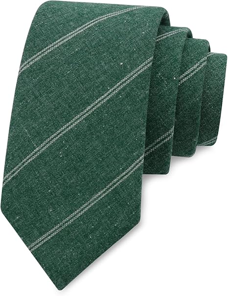 Mens Tie, 2.56'' Skinny Ties for Men Cotton Linen Tie Striped Neckties for Groom Groomsmen Wedding Party Prom Business