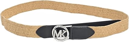 Michael Kors 556349C Black/Tan With Silver Hardware Woven Women's Belt Size L/XL