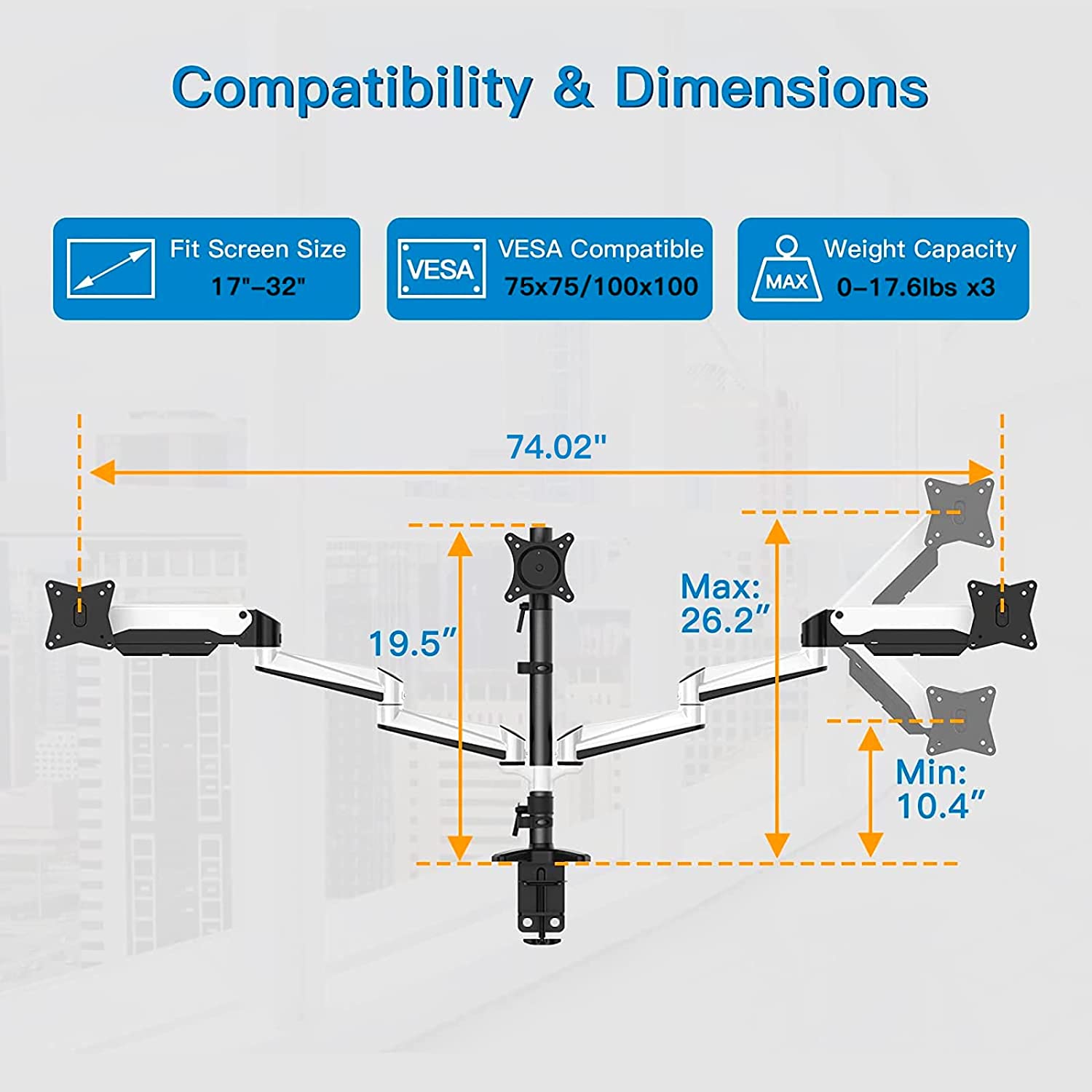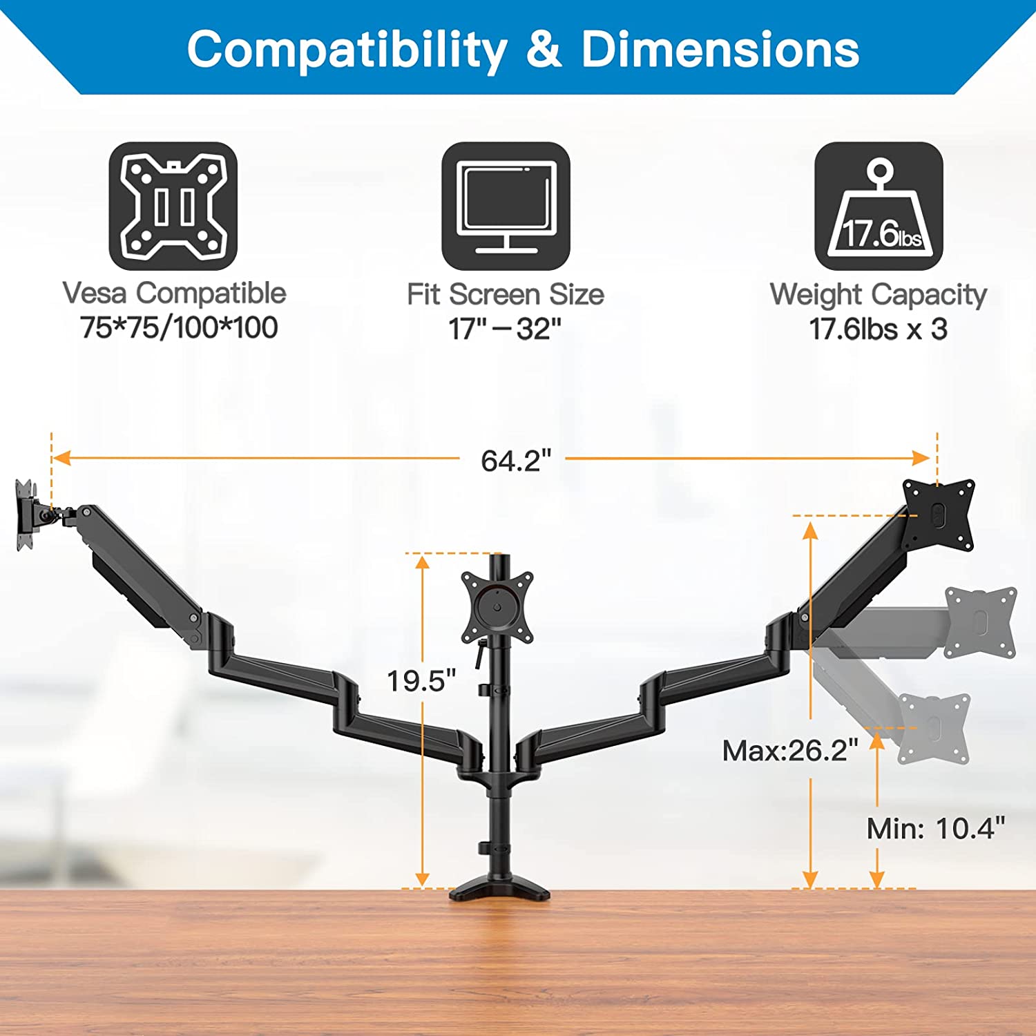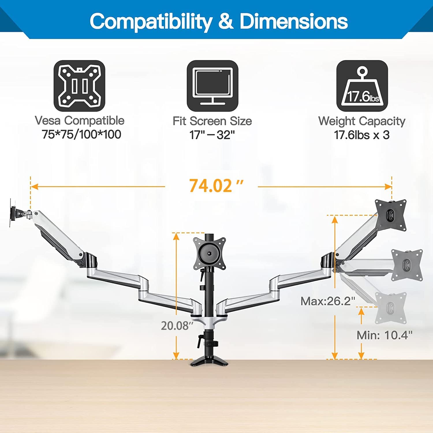 • Increase Comfort & Efficiency - Complete your work in 3 monitors at the same times with comfortable view position. Now you can enhance your work efficiency in comfortable work posture.