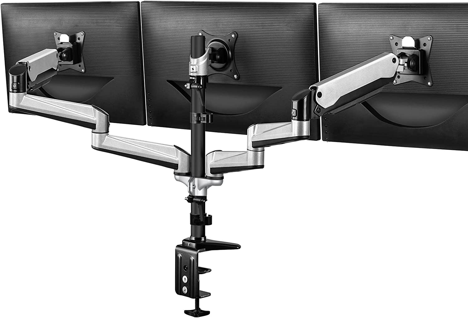 HUANUO Triple Monitor Stand - 3 Monitor Mount with Gas Spring Monitor Arm Fit Three 17 to 32 inch Flat/Curved LCD Computer Screens with Clamp, Grommet Kit, Black