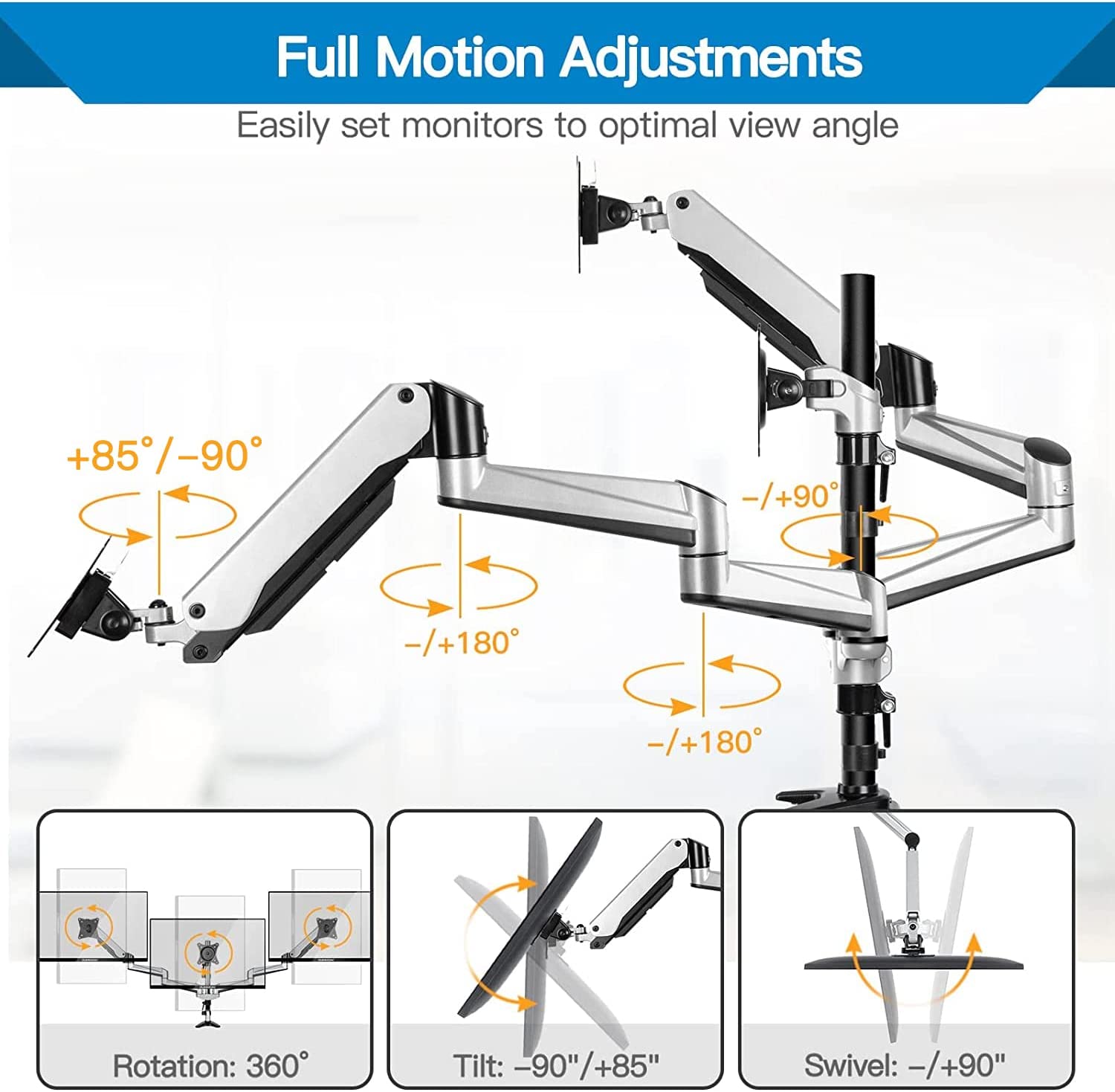 • Customized For Optimal View - The fully articulating arms allow your monitors swivel, tilt and rotate to find an optimal view angle and position for comfortable work. Freely set your monitors to landscape or portrait mode!