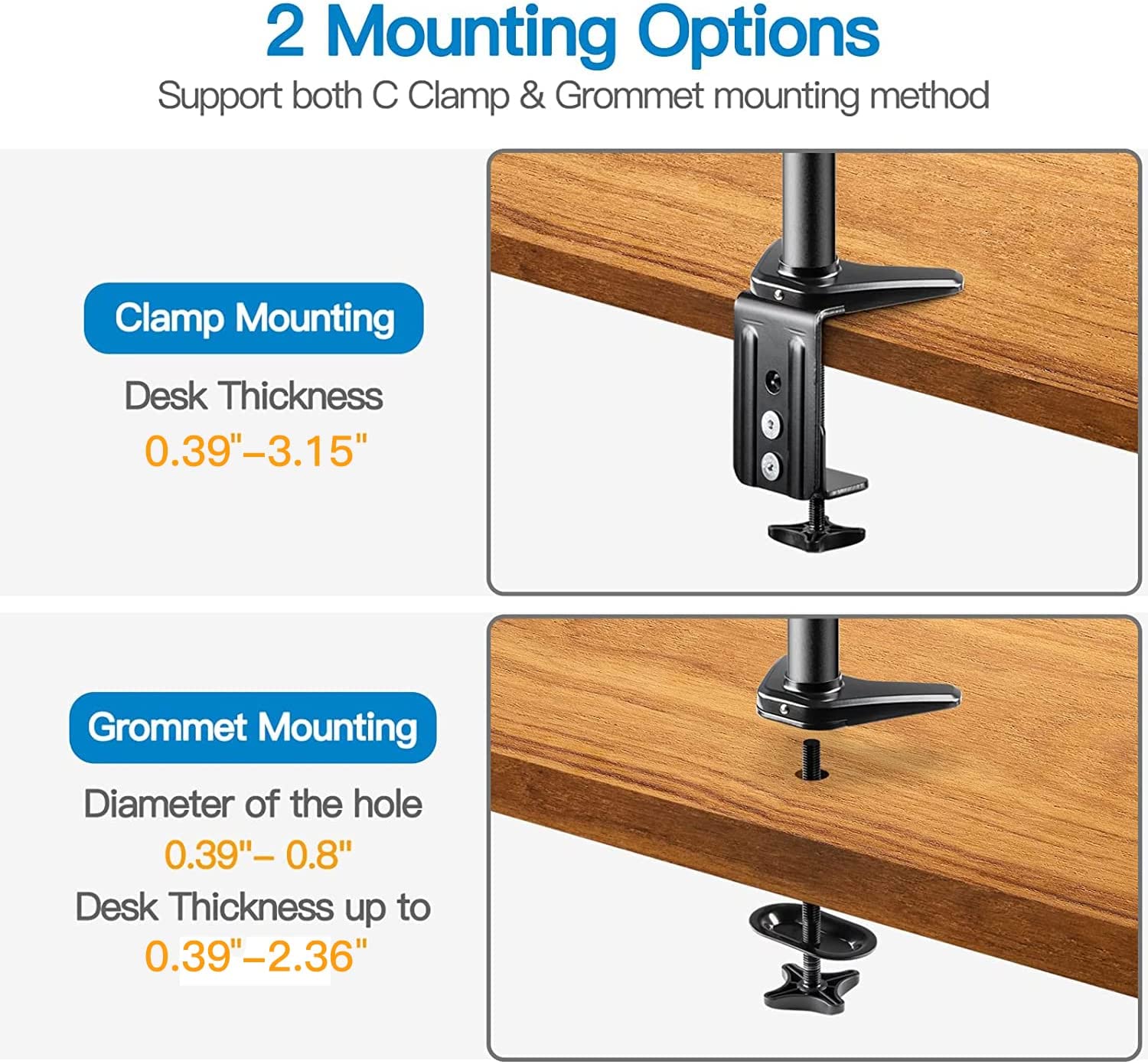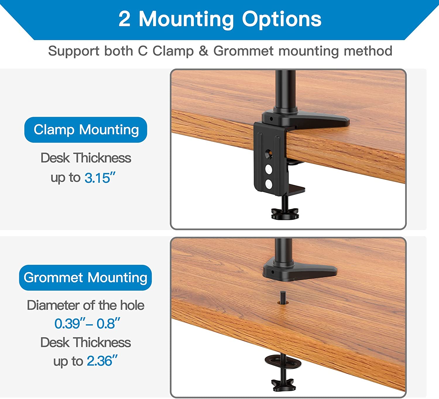 • 2 Mounting Options -The C clamp and grommet mounting base holds your monitors securely. Choose the proper mounting method as your need.