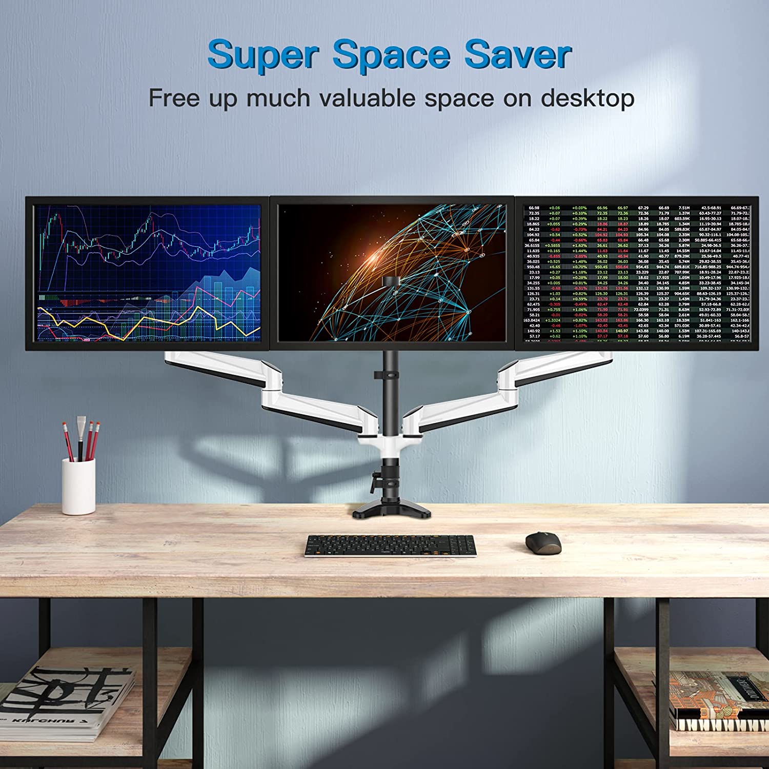 • Super Space Saver - Conveniently frees up more valuable work space by elevating 3 monitors off of your desk, making your workstation spacious and clutter-free.