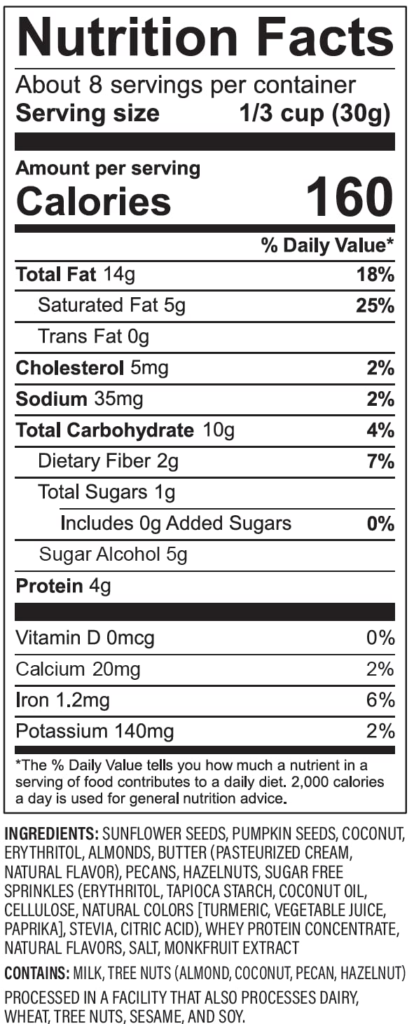 • SWEET OR SAVORY : Whether you’re making dinner or dessert our Low-Sugar, Low-Carb Nut Granola adapts to your needs.