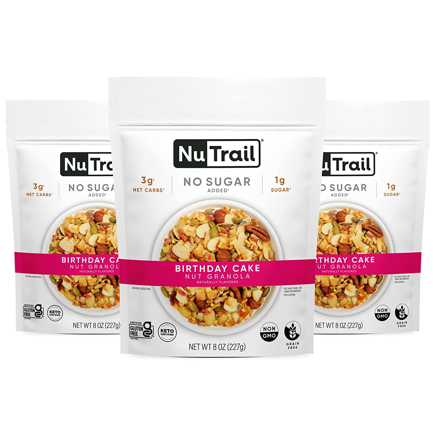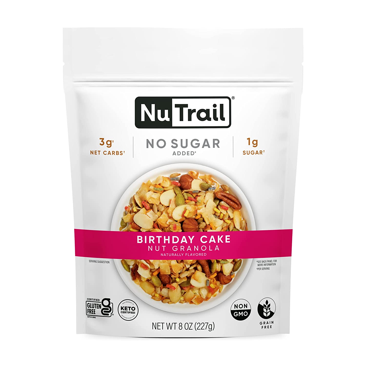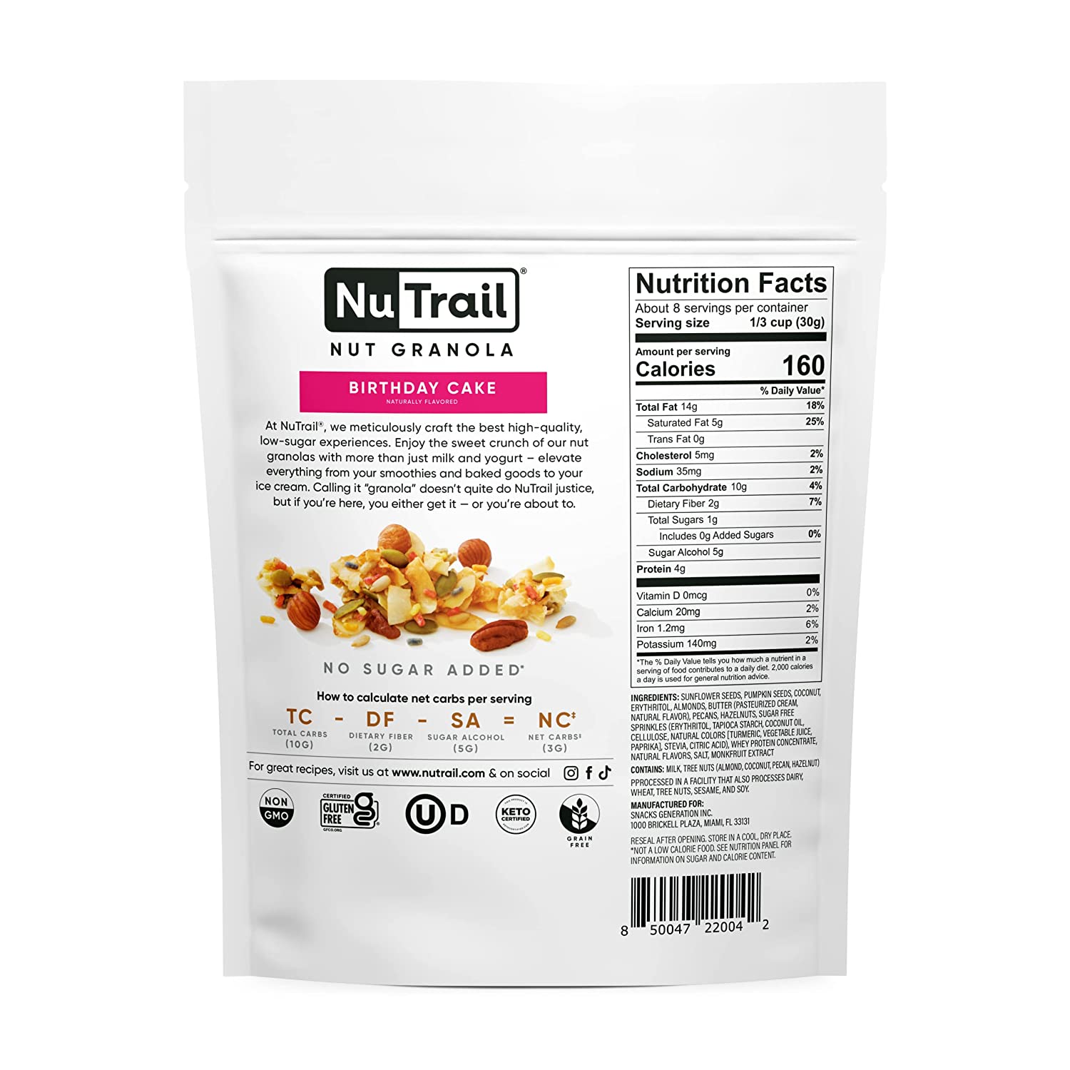NuTrail Nut Granola, Birthday Cake, No Sugar Added, Gluten Free, Grain Free, Keto, Low Carb, Healthy Breakfast Cereal 8 oz. 1 Count
