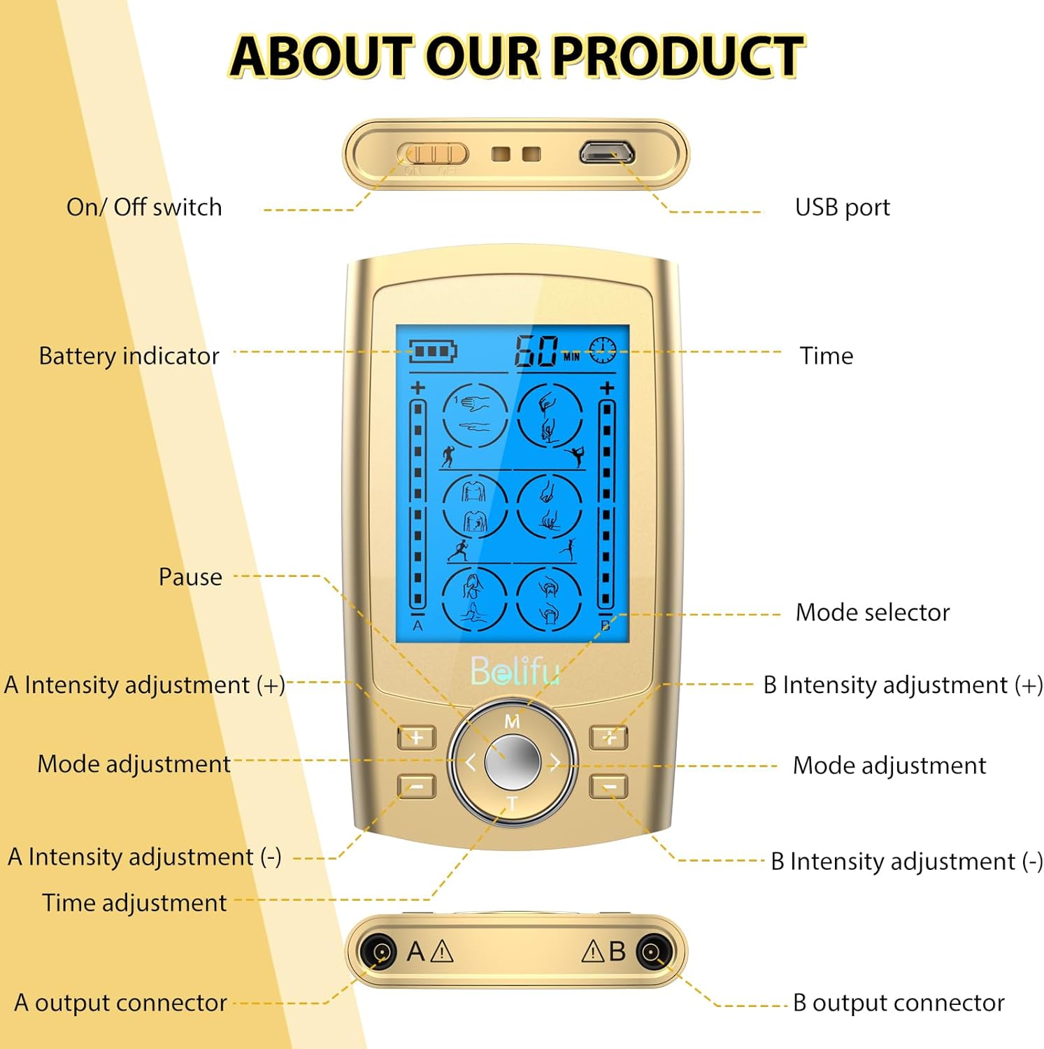 • Non Invasive, Non Drug Choice for Relieving Pain. Great Device You Can Use at Home for Pain Management. If you want to relieve pain, just trying Belifu TENS massager. It is with human body simulation technology, microcomputer intelligent control technology, simulates a variety of massage methods. Help for relieving pain associated with sore and aching muscles in the shoulder, waist, back, neck, upper extremities (arm), and lower extremities(leg) due to strain from exercise or household work.