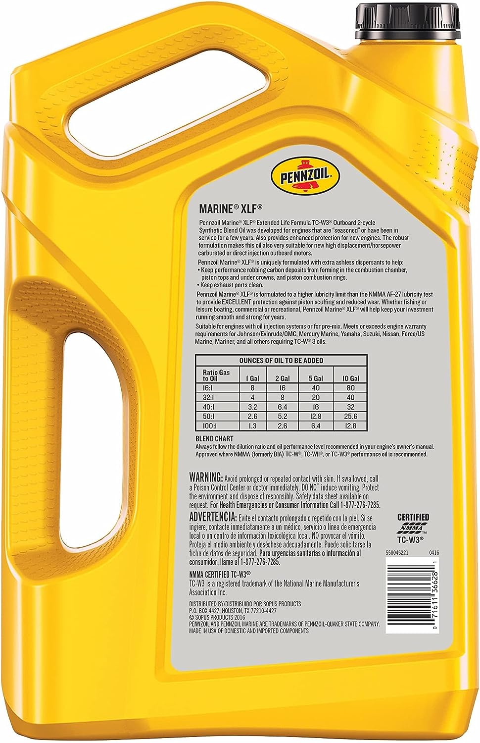 Specifically designed for exceptional performance in marine applications, Pennzoil Marine (Extended Life Formula) XLF is a synthetic blend outboard two-cycle oil that's formulated to provide excellent protection against piston-scuffing and reduced wear. Whether fishing or leisure boating, commercial or recreational, Pennzoil Marine XLF will help keep your investment running smooth and strong for years. Developed for marine engines that are “seasoned” or have been in service for a few years, the robust formulation, Pennzoil Marine XLF is very suitable for new high-displacement/horsepower carbureted or direct injection outboard motors. Exceeds the requirements of the NMMA TC-W3 standard. It is recommended for and meets the warranty requirements of outboard engines produced by the following manufacturers: Johnson/Evinrude/OMC, Mercury Marine, Yamaha, Suzuki, Nissan, Force/US Marine, Mariner, and others. For a full listing of equipment approvals and recommendations, please consult your local Shell Technical Helpdesk.