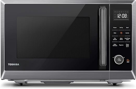 TOSHIBA Air Fryer Combo 8-in-1 Countertop Microwave Oven, Convection, Broil, Odor removal, Mute Function, 12.4" Position Memory Turntable with 1.0 Cu.ft, Black stainless steel, ML2-EC10SA(BS)