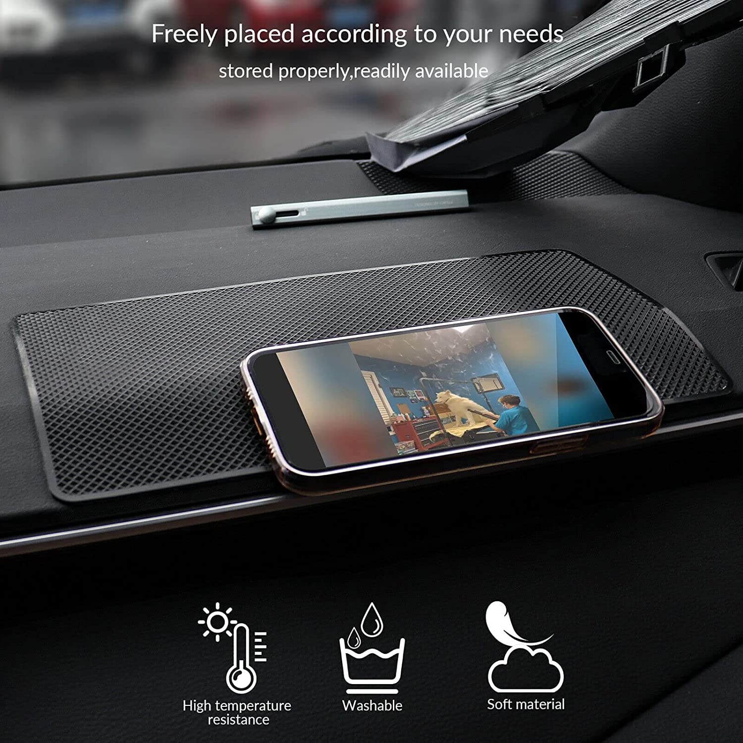 Anti-slip mat, clings to your dashboard or center console and clings to anything that's placed on it. Your cell phone, sunglasses or anything placed on the Sticky Mat will not slide off.