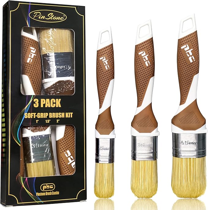 3 Pack Professional Paint Brushes Set, 1", 1.5", 2" House Paint Brush, Premium Synthetic Bristles, Ergonomic Rubber Handle, Small Paint Brushes for Walls, Wood Stain, Cabinets, Chalk Paint