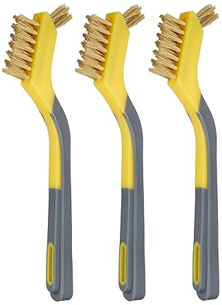 Amazon Basics Brass Mini Brushes, Soft Grip, 3-Pack, 1/2 inch, Yellow/Grey