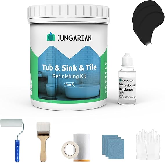 Tub and Tile Refinishing Kit 17.5oz with Tools, Low Odor DIY Bathroom Paint Sink Tub Countertop Tile Shower Paint for Bathroom Kitchen Porcelain Fiberglass, Semi-Gloss Black