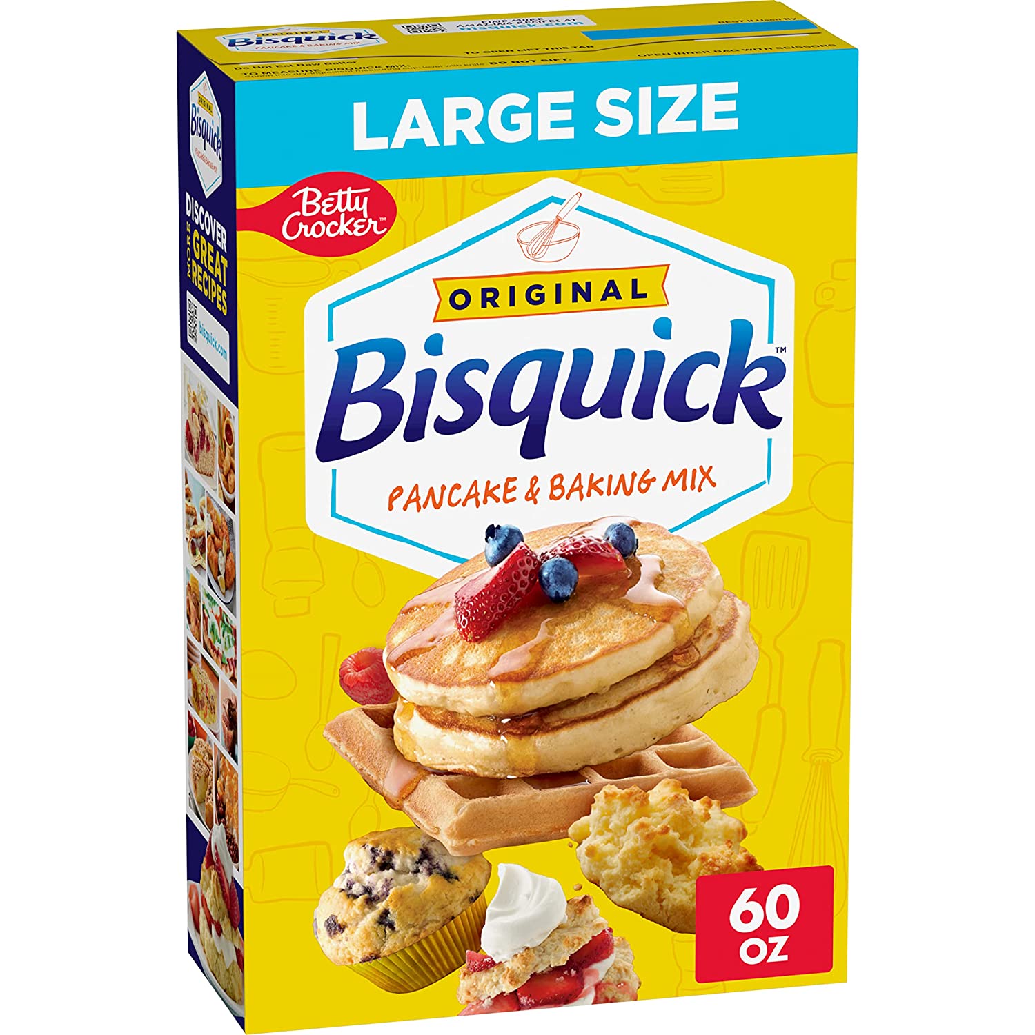 Make quick and easy family breakfast favorites with Betty Crocker Bisquick Original Pancake & Baking Mix. This versatile baking mix can be used for biscuits, muffins, pancakes, waffles and even pie. From hot, fluffy pancakes to moist, crumbly muffins, bake restaurant-worthy breakfast dishes with this all-purpose baking mix. Just add milk and eggs to start crafting a family-friendly breakfast spread. Serve your creations with a buffet of delicious toppings like syrups, whipped cream, sliced fruit, peanut butter and more. It's time to start a new family tradition. Bisquick has been creating family favorites since 1931. Use Betty Crocker Bisquick Original Pancake & Baking Mix for delicious and easy-to-prepare breakfast dishes for any time of the day.