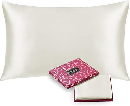 100% Mulberry Silk Pillowcase for Hair and Skin Health, Hidden Zipper, 22 Momme, Both Sides Smooth, Breathable and Natural, Machine Washable, Sleep Mantra (Queen, Natural White)