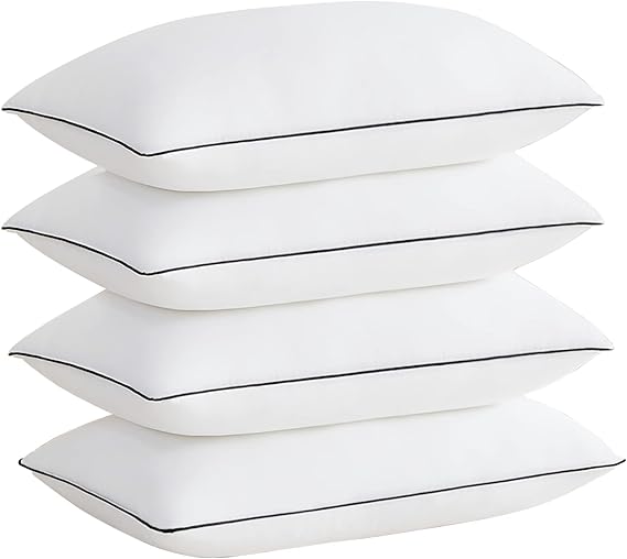 Acanva Cooling Bed Pillows for Sleeping, Luxury Hotel Quality 3D Microfiber Filling with Breathable Cover for Side Back and Stomach Sleepers, Reduces Neck Pain, King (Pack of 4), Black 4 Count