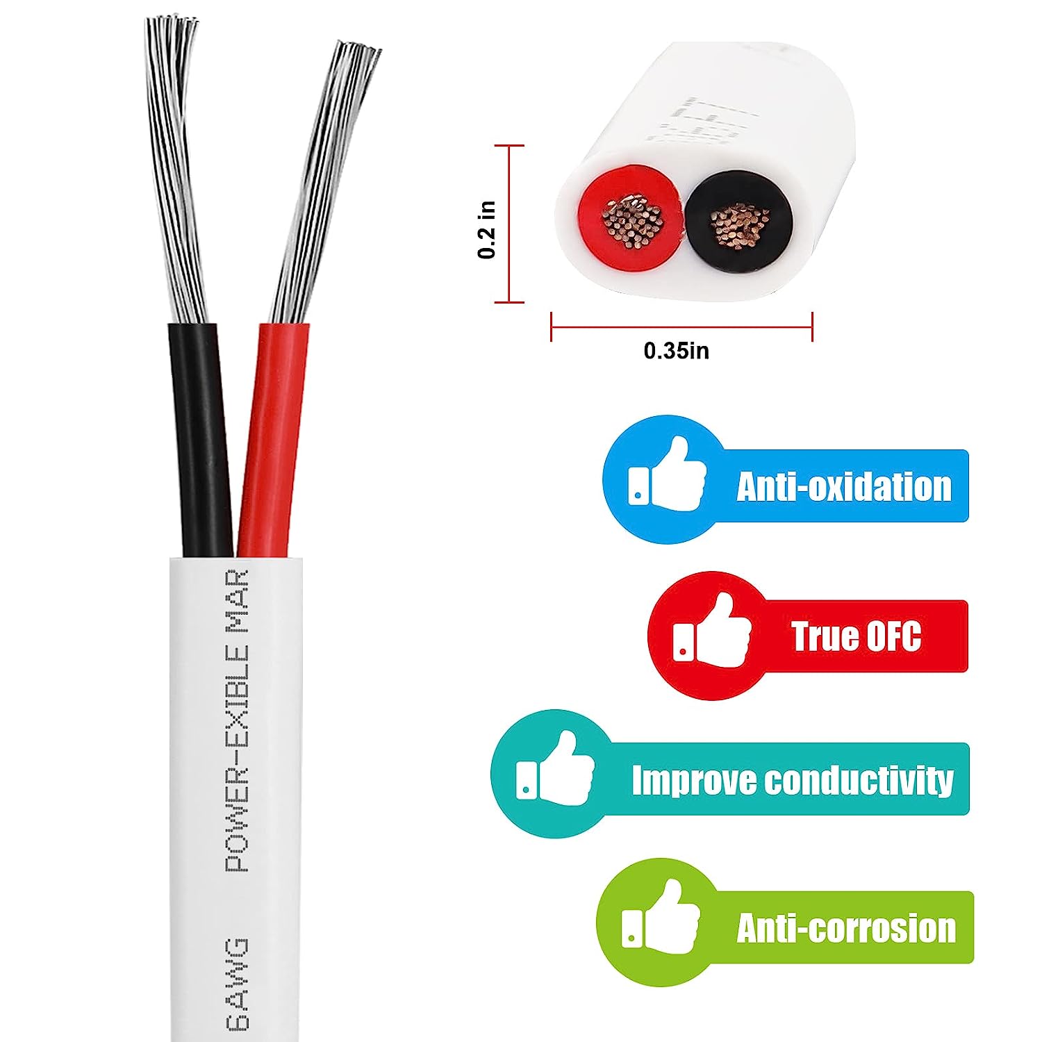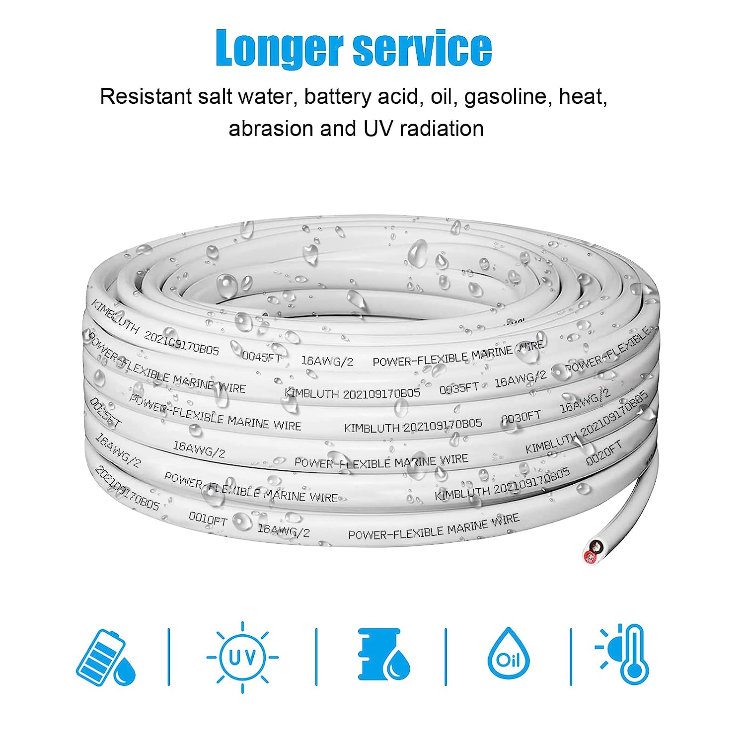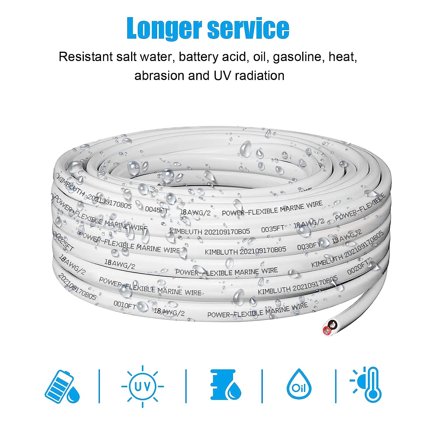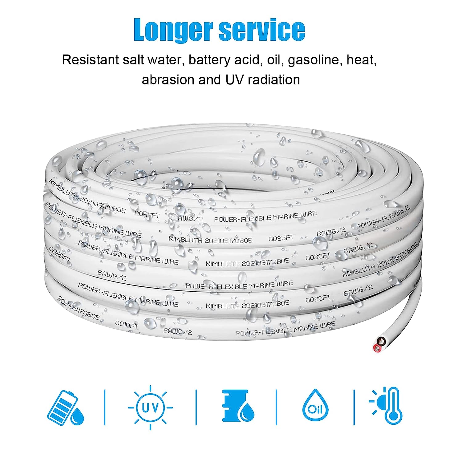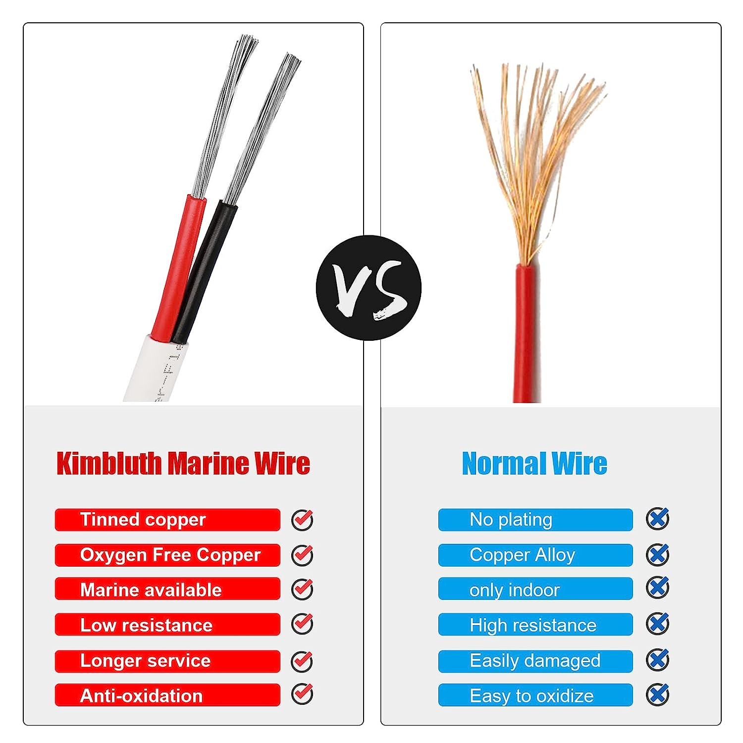 Kimbluth 10 Gauge Duplex Marine Wire Tinned Copper Boat Cable, 30ft 10 AWG Standard USA OFC Oxygen Free Copper Wire for Automotive Boat Speakers Solar Outdoors