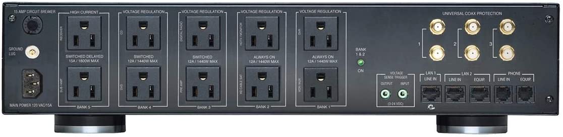 The M5400-PM is designed to provide noise isolation between 5 isolated outlet banks including 2 high current outlets so that any noise created by an A/V component can not contaminate the power going to equipment plugged into another outlet bank.