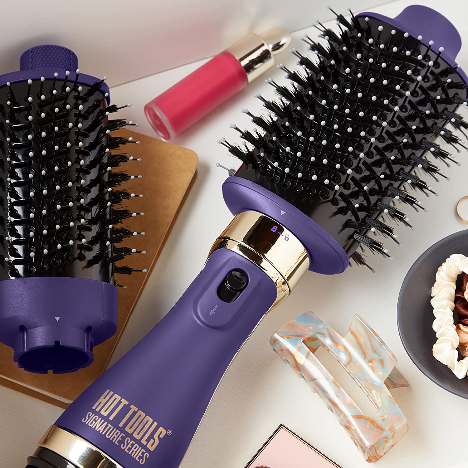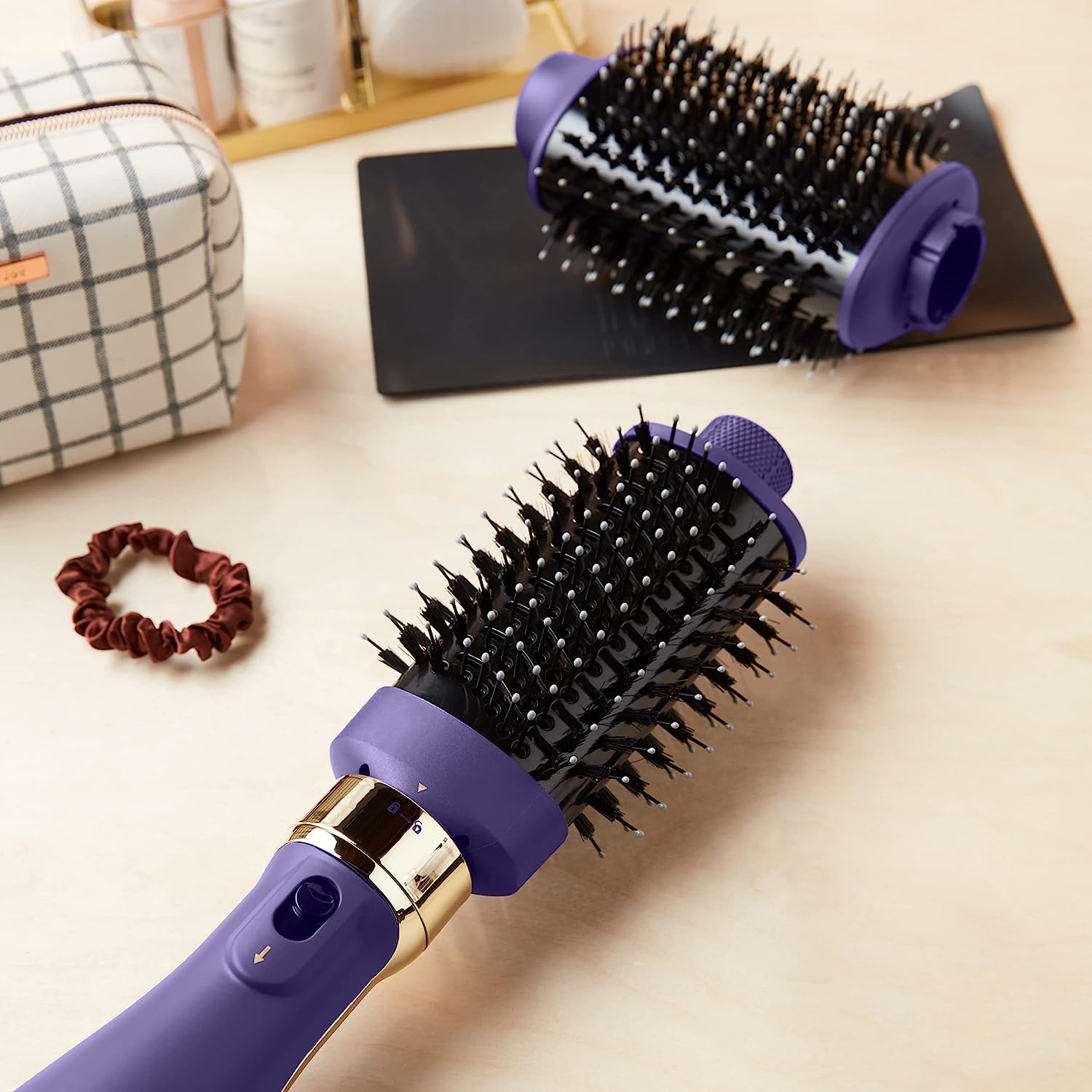 The straight dry paddle brush head attachment is designed with all of the same features you love to help you dry, straighten, and refresh your hair the way it deserves. The new paddle brush head is large, allowing you to dry and smooth hair quickly. Boartech flexible, detangling bristles easily work through hair, gently detangling to help reduce breakage, while also providing better grip on strands for the perfect smooth and straight styles. Pro tip: change up your style. Use the ribbed design on the back of the paddle brush to curl ends under or flip out. Variable temperature control provides a variety of drying and styling options, And most importantly, great results for all hair types. Refresh activated charcoal helps revive hair. The perfect solution for routine styling and second-day revamps.