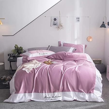 Bedding Set King Size Silk Bedding Set Full Size White Satin Silk Sets King Duvet Covers Double Bed Quilt Cover Flat Sheet Soft Silky Luxury Twin (Purple King)
