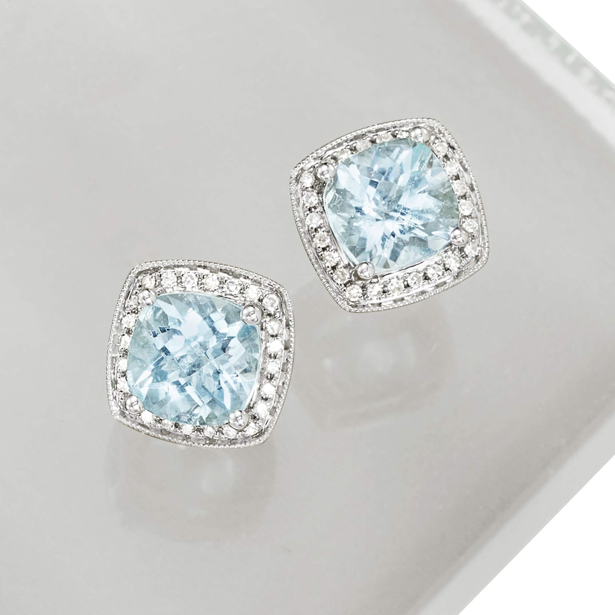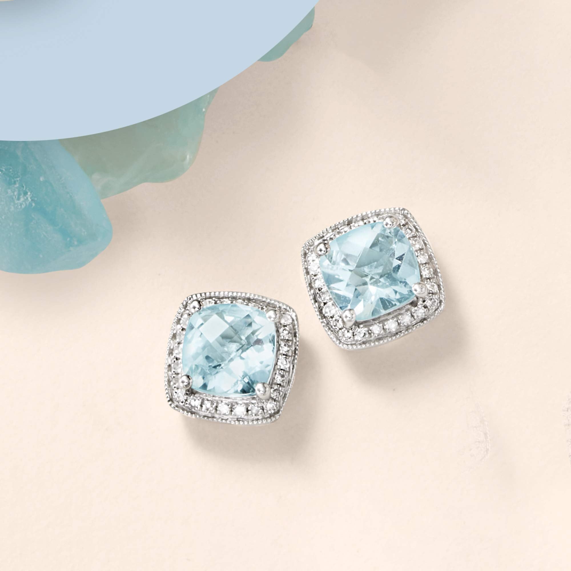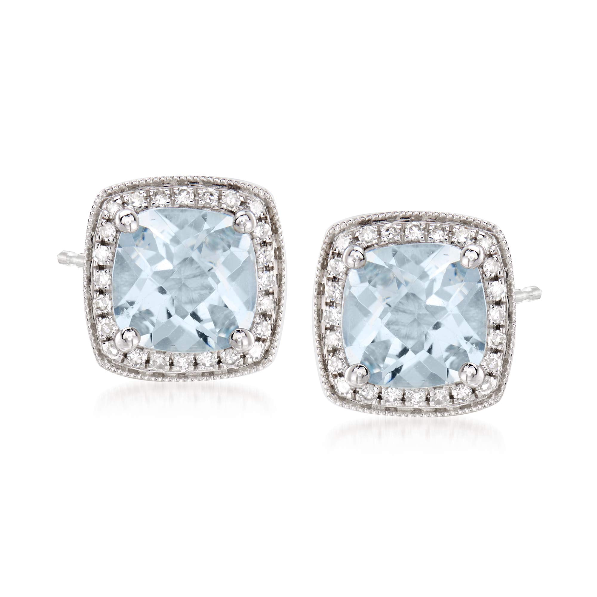 Details: A top-rated jeweler since 1952, Ross-Simons travels the world to find high-quality styles at the best prices. The dreamy allure of 2.60 ct. t.w. of aquamarines beckons in these shimmering stud earrings, outlined in .20 ct. t.w. of diamond rounds. Post/clutch, 14kt white gold earrings. Each Ross-Simons item arrives in a fine jewelry presentation box. Shop Ross-Simons jewelry risk-free as all items include a 30-day, 100% money-back guarantee.