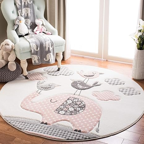 SAFAVIEH Carousel Kids Collection Area Rug - 4' Round, Pink & Ivory, Animal Design, Non-Shedding & Easy Care, Ideal for High Traffic Areas for Boys & Girls in Playroom, Nursery, Bedroom (CRK127P)