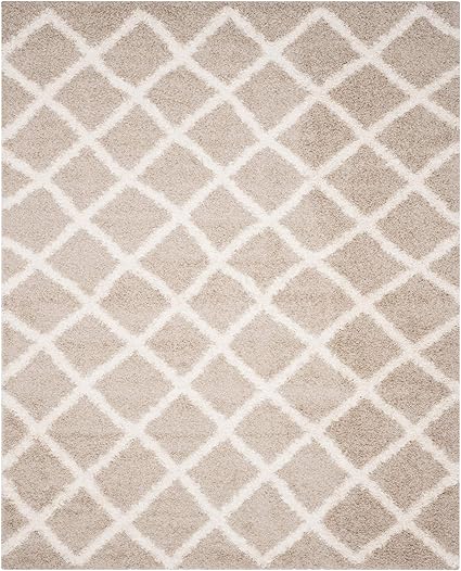 SAFAVIEH Dallas Shag Collection Area Rug - 8' x 10', Beige & Ivory, Trellis Design, Non-Shedding & Easy Care, 1.5-inch Thick Ideal for High Traffic Areas in Living Room, Bedroom (SGD258D)