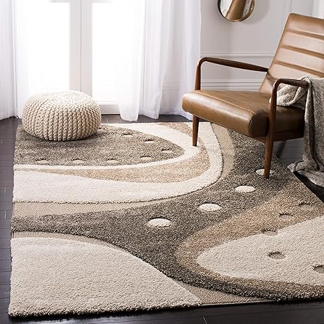 SAFAVIEH Florida Shag Collection Area Rug - 6' x 9', Brown & Ivory, Abstract Design, Non-Shedding & Easy Care, 1.2-inch Thick Ideal for High Traffic Areas in Living Room, Bedroom (SG473-2811)