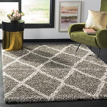 SAFAVIEH Hudson Shag Collection Area Rug - 8' x 10', Grey & Ivory, Moroccan Trellis Design, Non-Shedding & Easy Care, 2-inch Thick Ideal for High Traffic Areas in Living Room, Bedroom (SGH329B)
