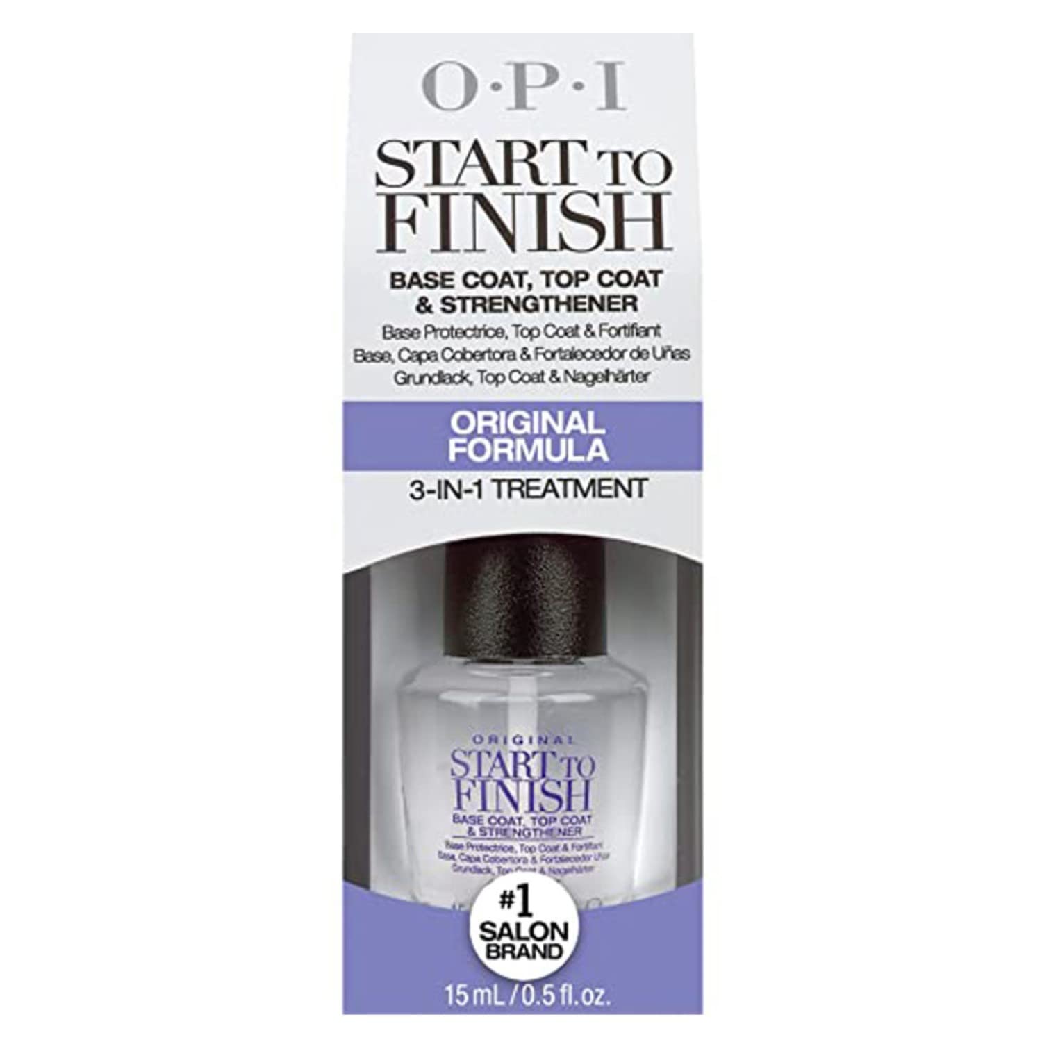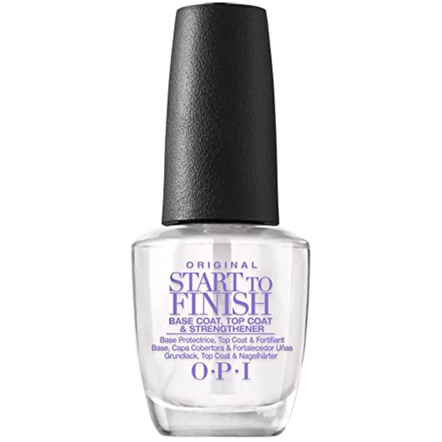 OPI Start to Finish, 3-in-1 Treatment, Base Coat, Top Coat, Nail Strengthener, Vitamin A & E, Vegan Formula, Long Lasting Shine, Up to 7 Days of Wear as Top Coat, Clear, 0.5 fl oz