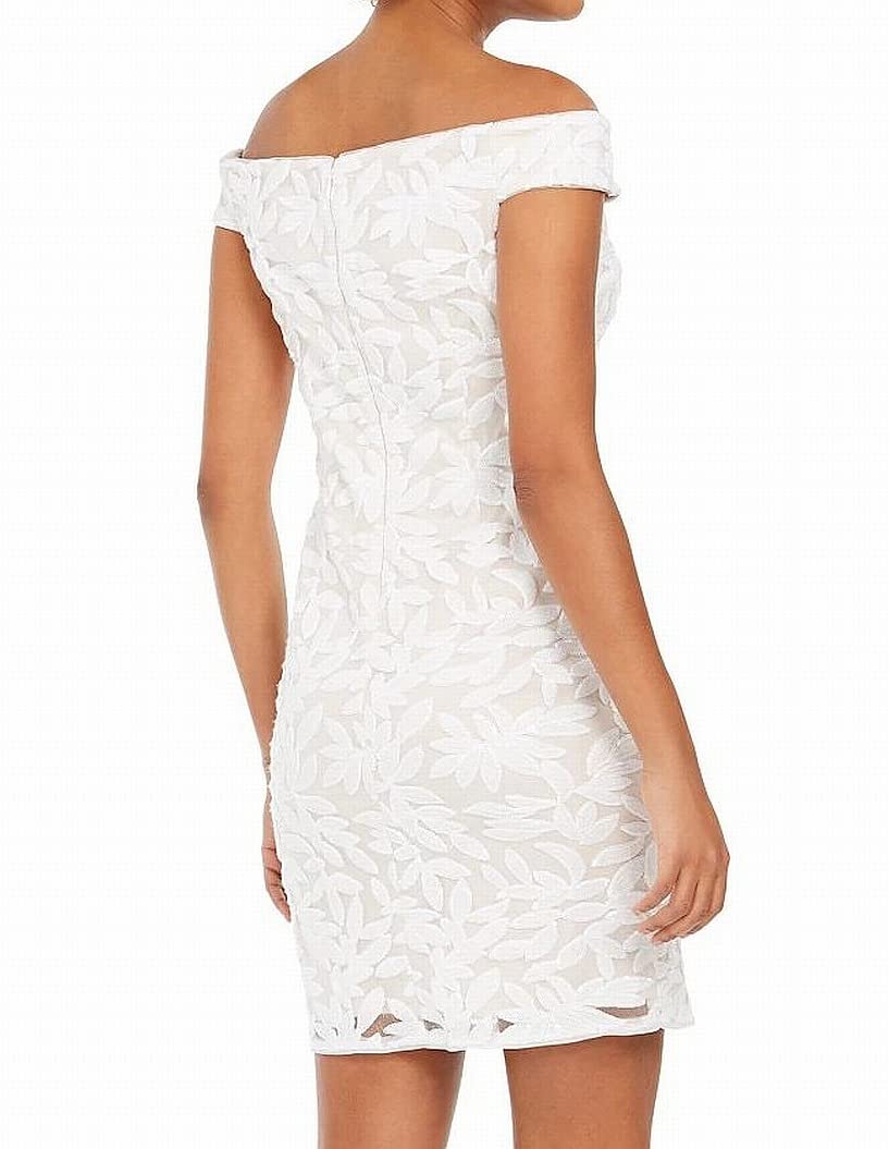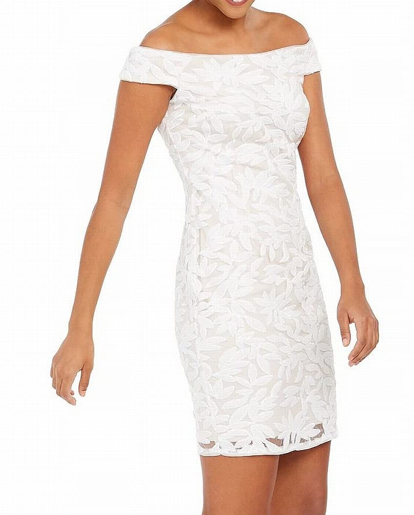 Details: From bridal events to cocktail parties, this floral party dress is a definite stunner. This beautiful special occasion dress features a sexy off-the-shoulder neckline, sparkling sequin floral, and a short sheath skirt. Additional details on this cocktail dress include a back zipper closure. Rock this breathtaking party dress with shining statement earrings, fabulous heels, and a sleek clutch to create a show-stopping look that's bound to impress.