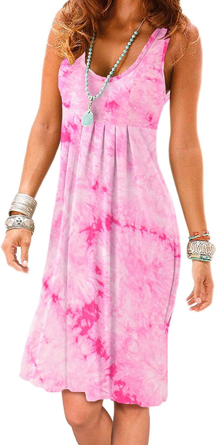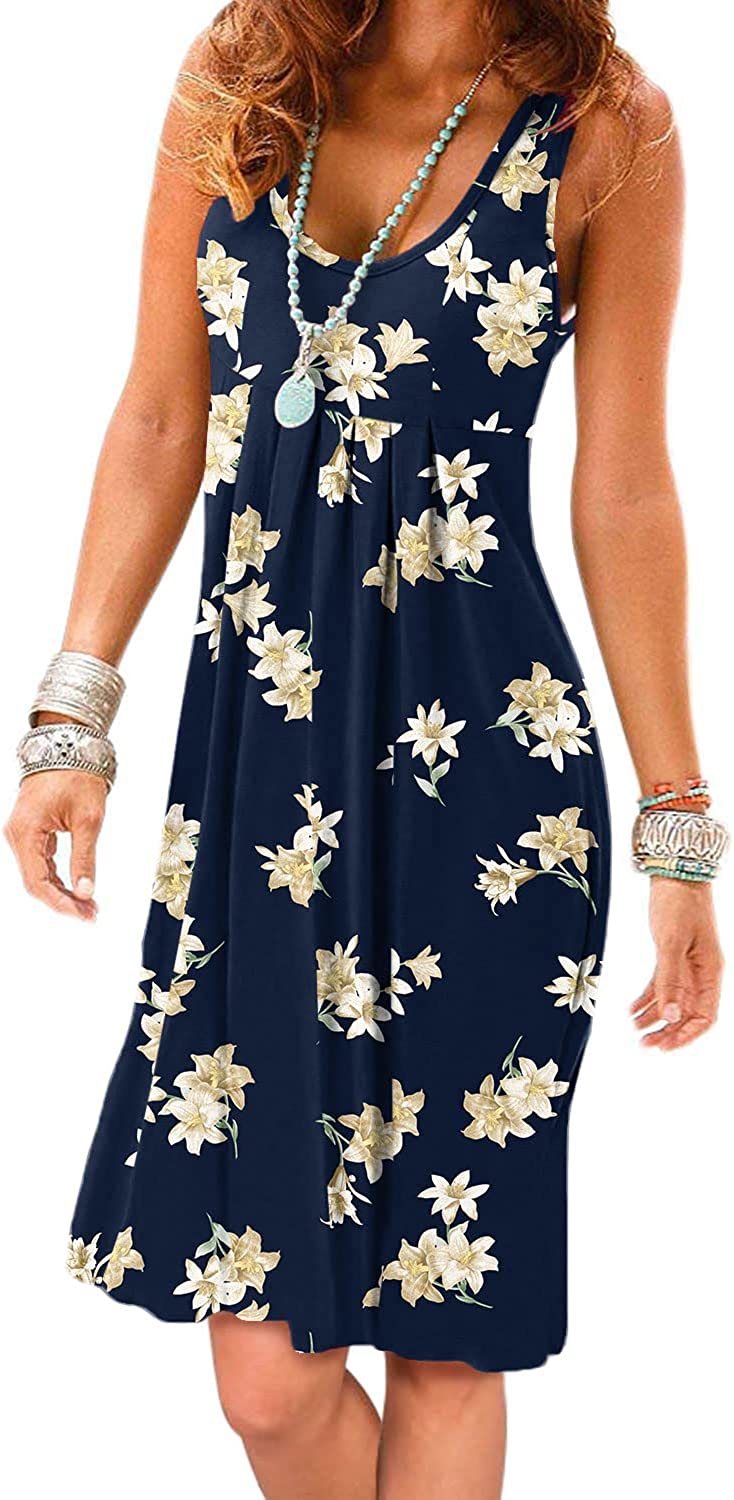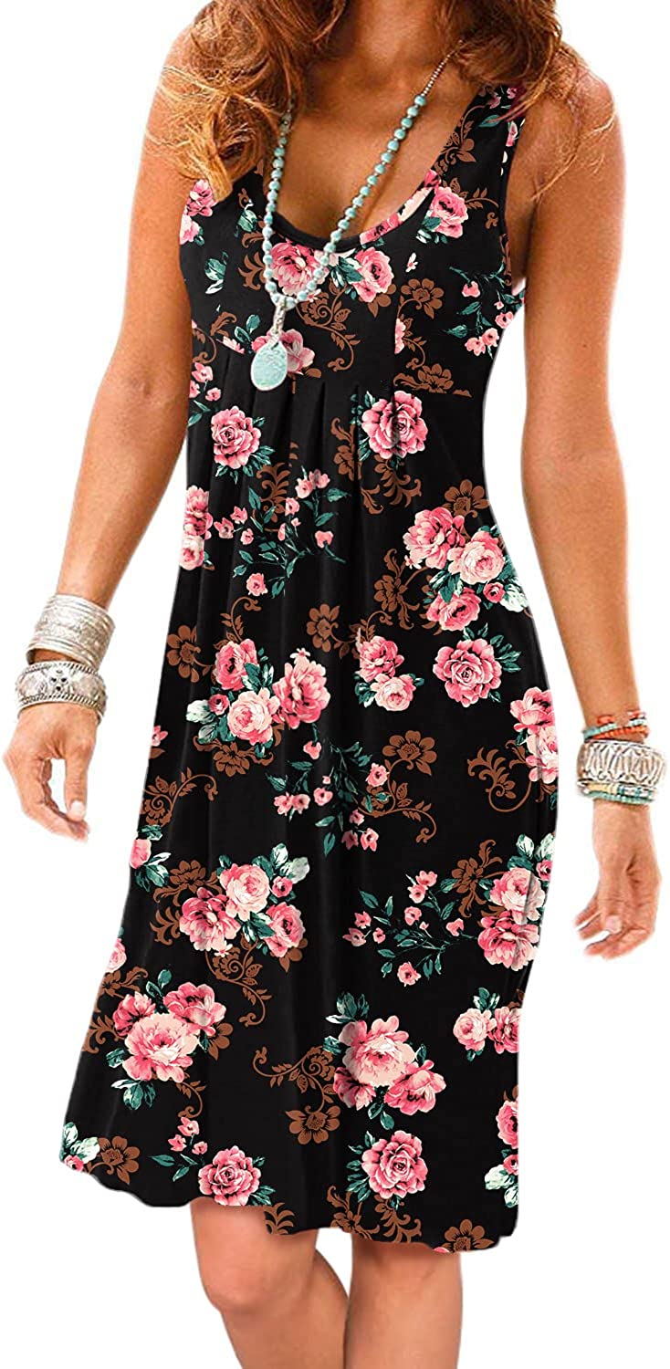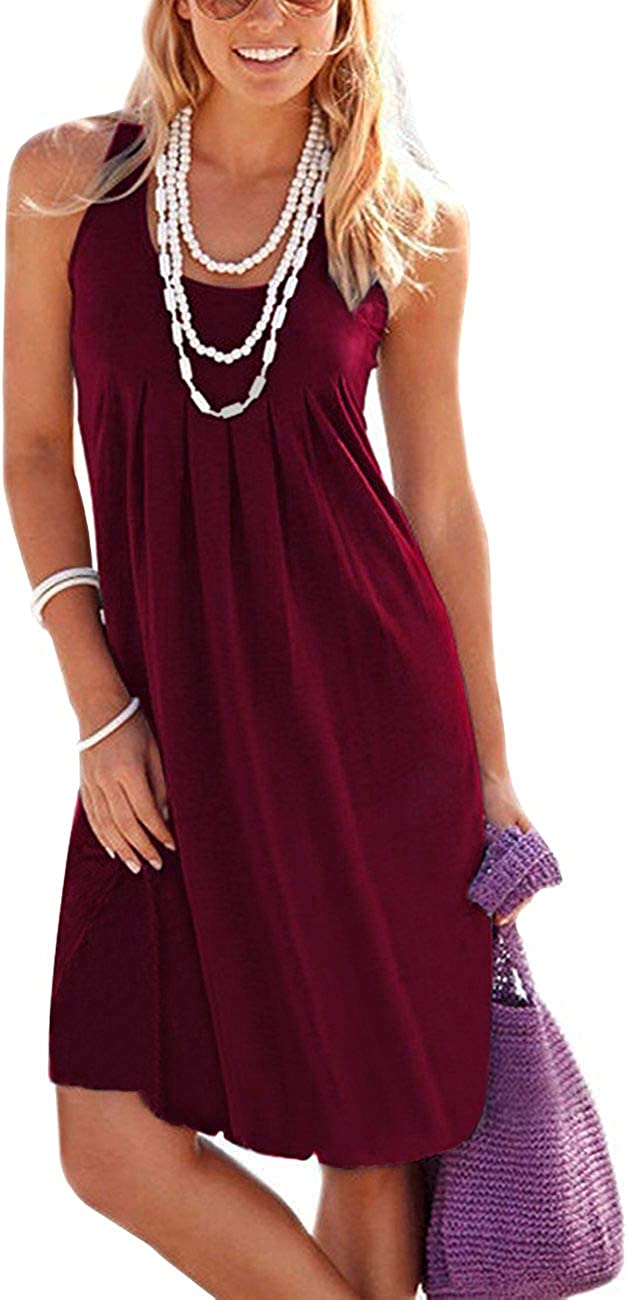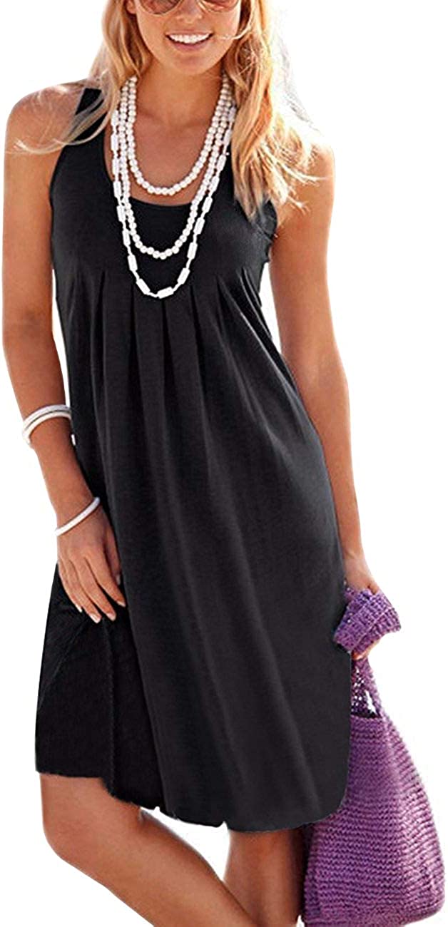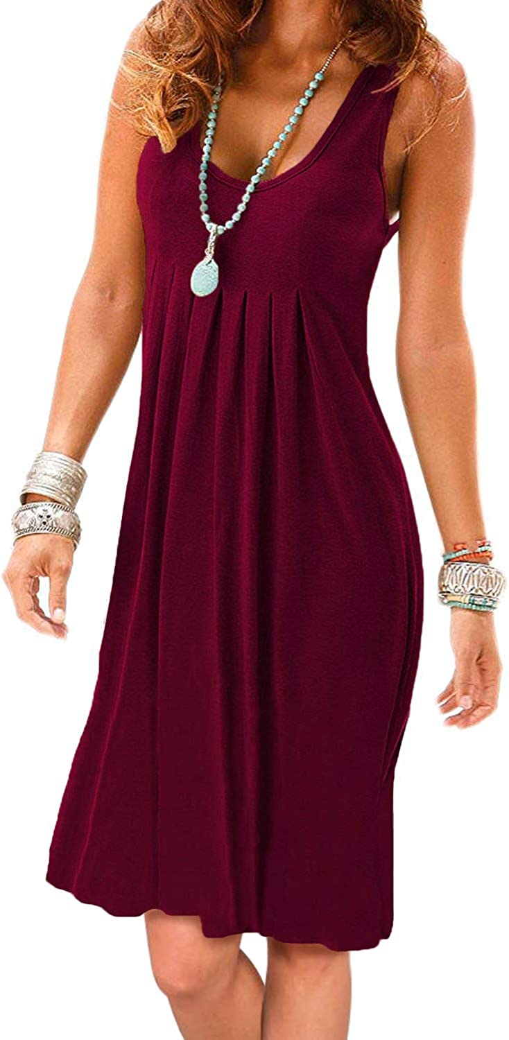 Jouica Women's Casual Summer Tank Sleeveless Knee Length Pleated Sun Dresses with Pockets