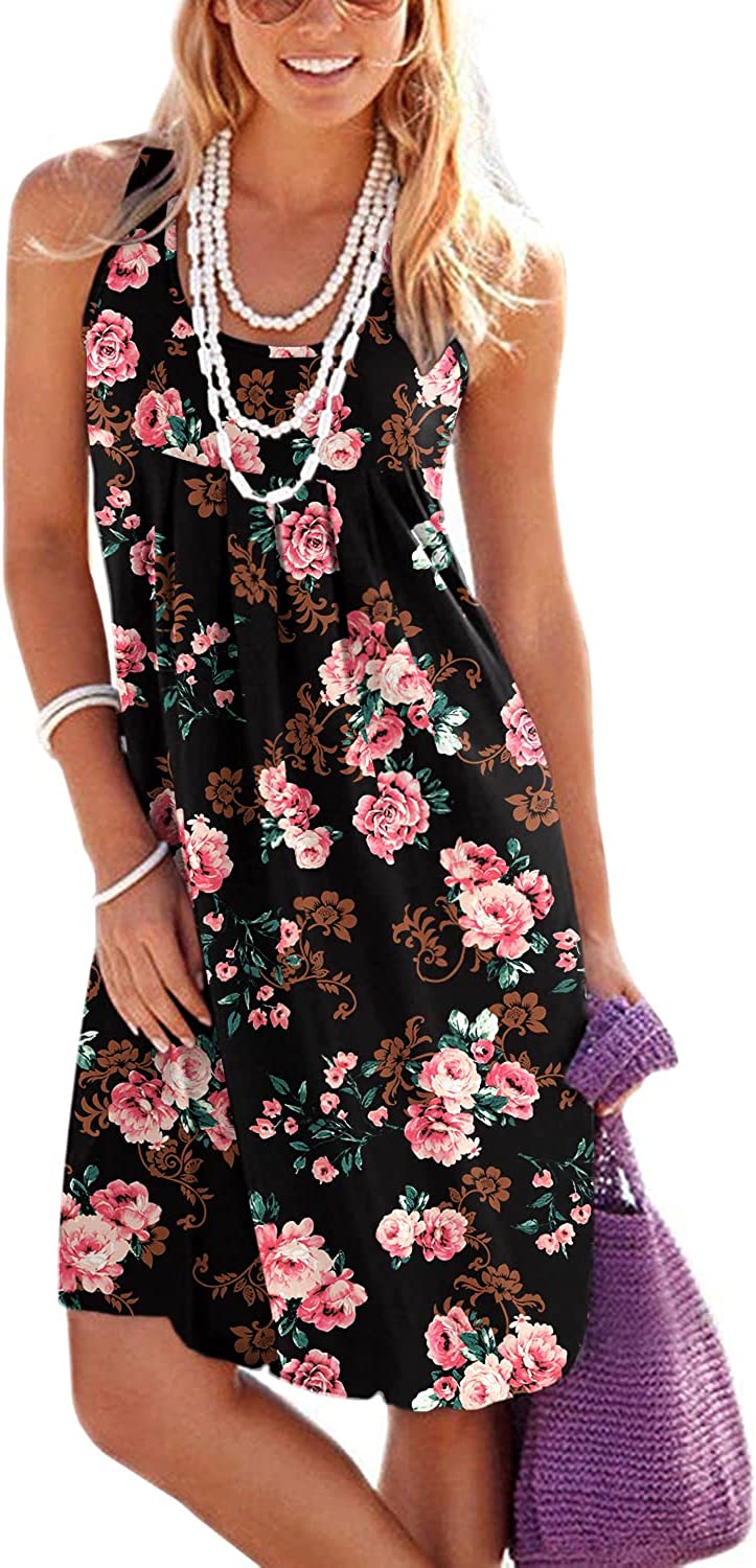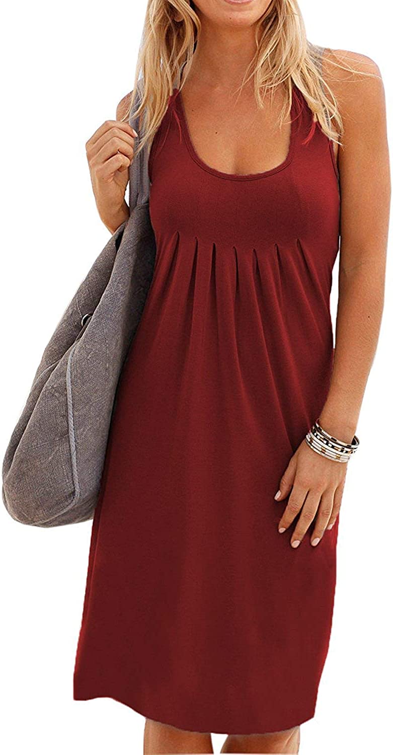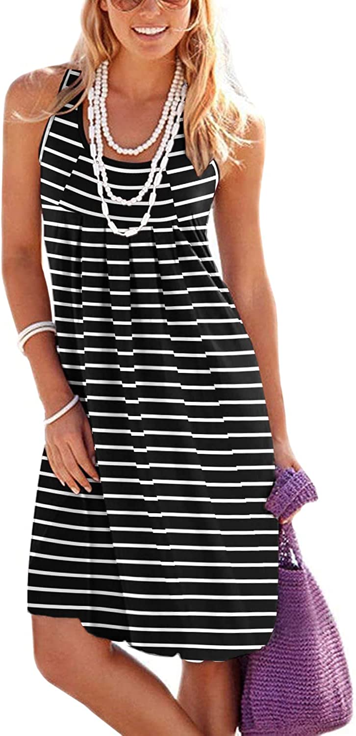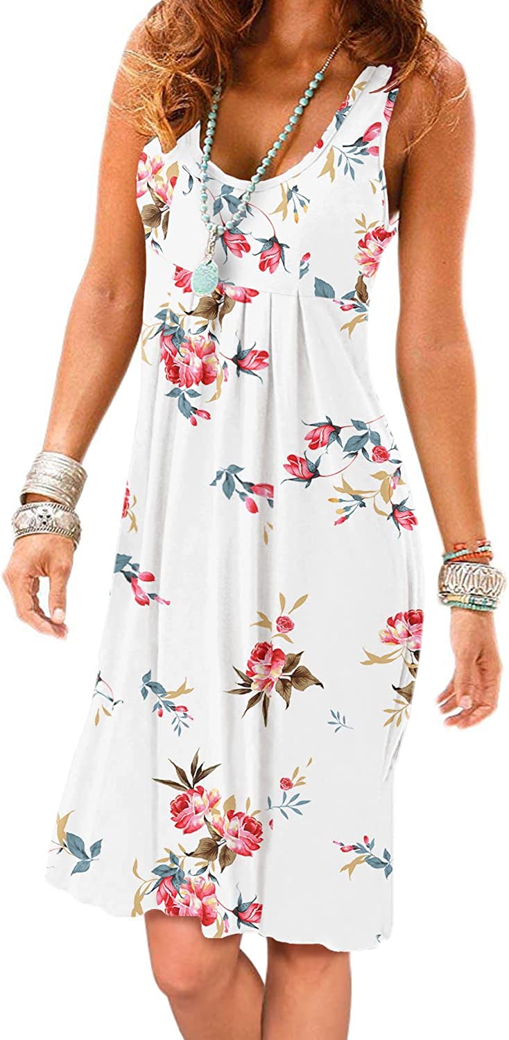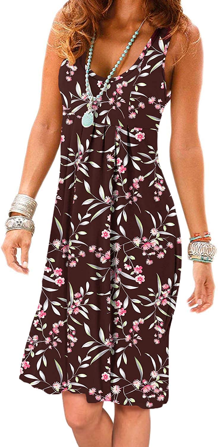 Jouica Women's Casual Summer Tank Sleeveless Knee Length Pleated Sun Dresses with Pockets