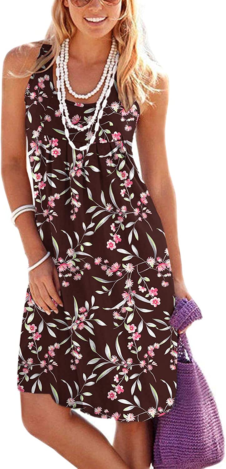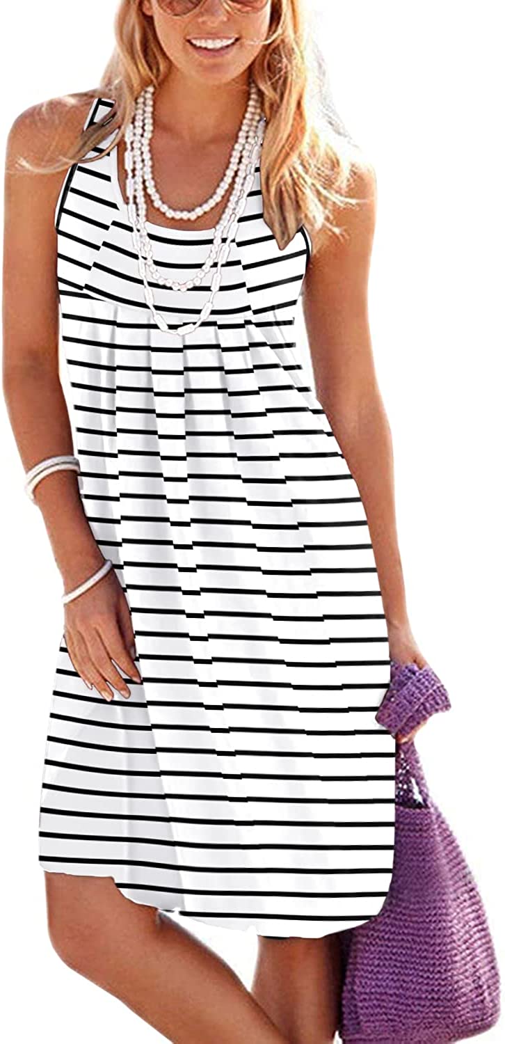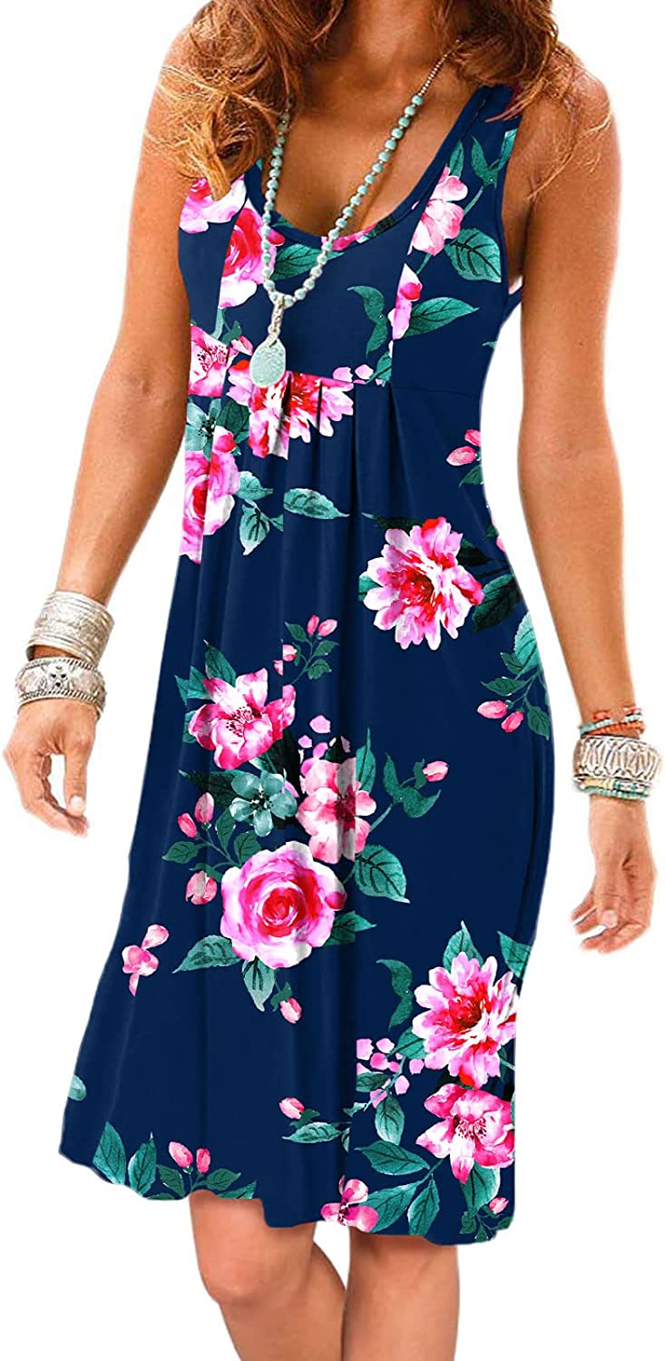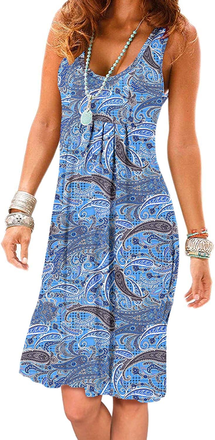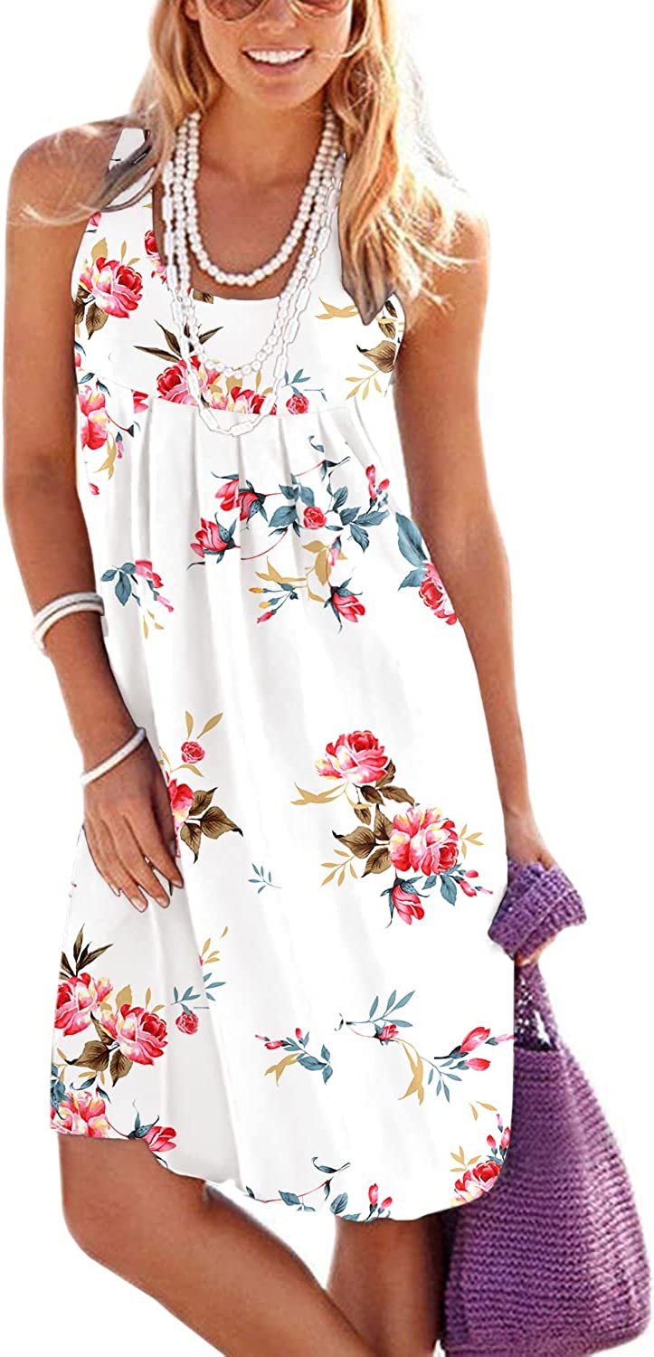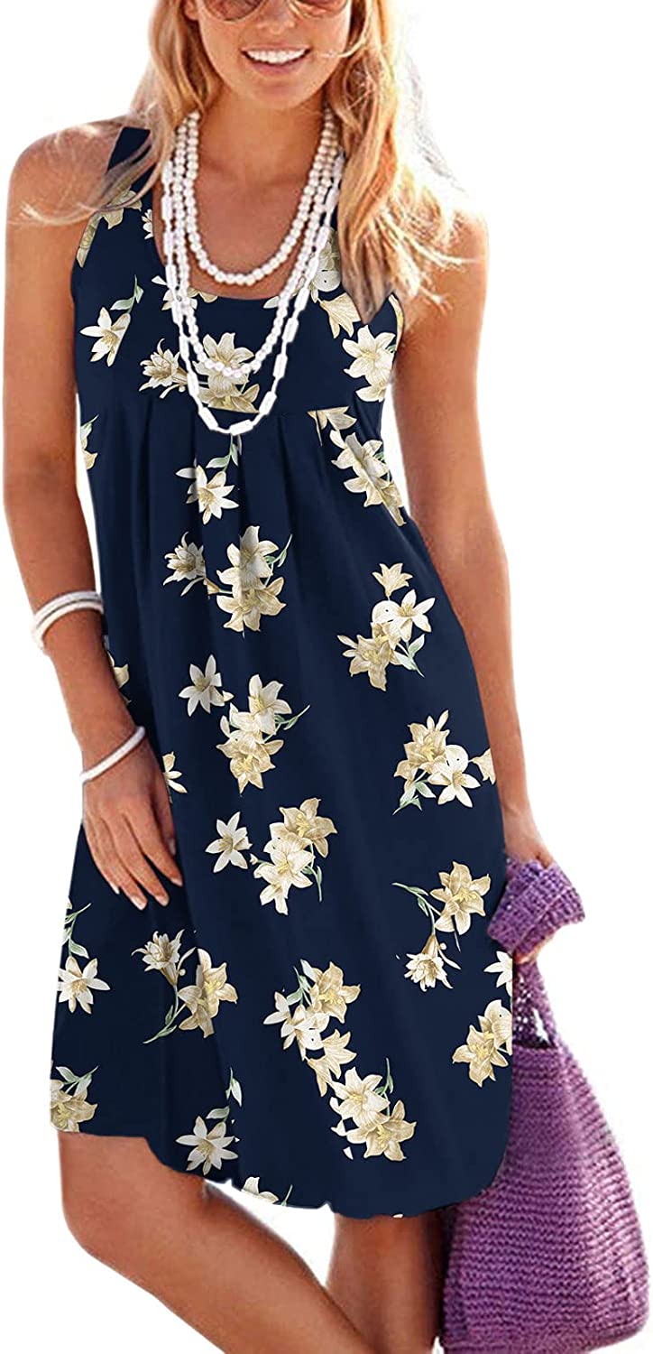 Jouica Women's Casual Summer Tank Sleeveless Knee Length Pleated Sun Dresses with Pockets